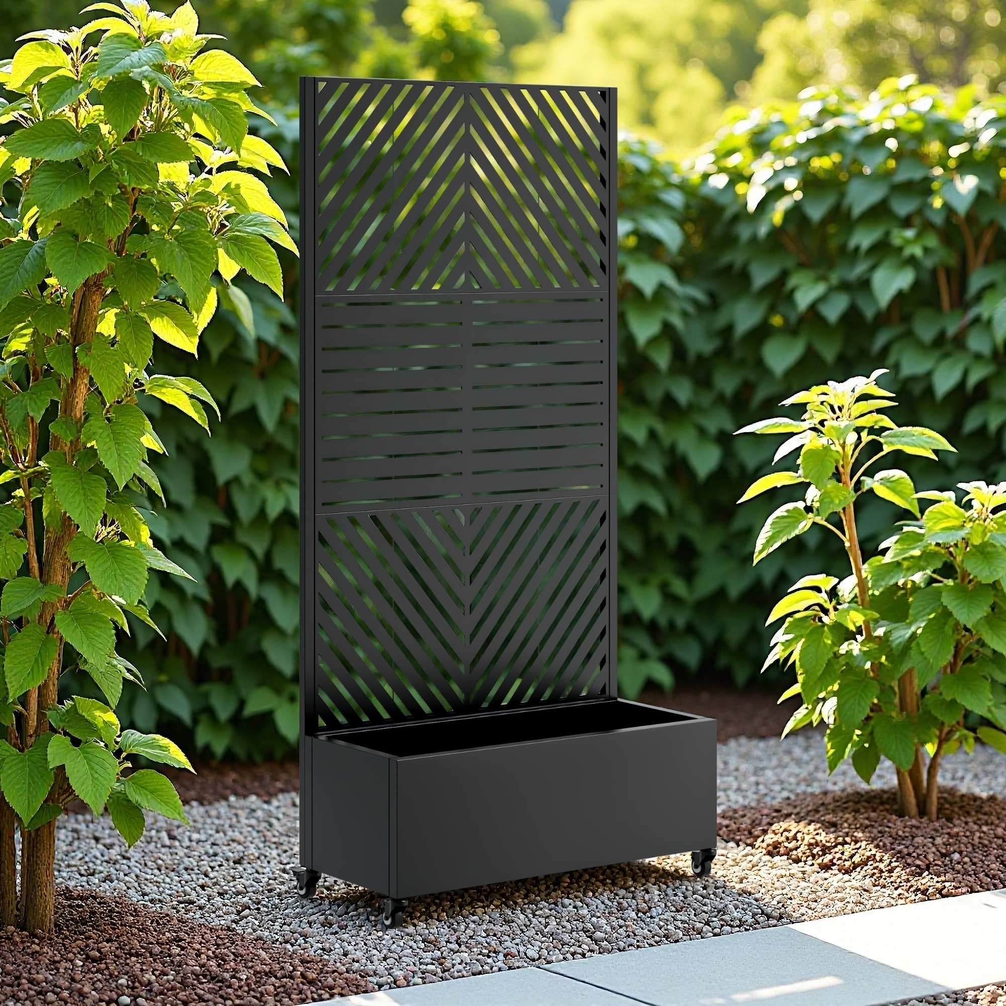 73" x 35" x 16" Metal Planter Box with Trelli Raised Garden Bed with Drainage Holes, Wheels & Privacy Screen for Climbing Plants