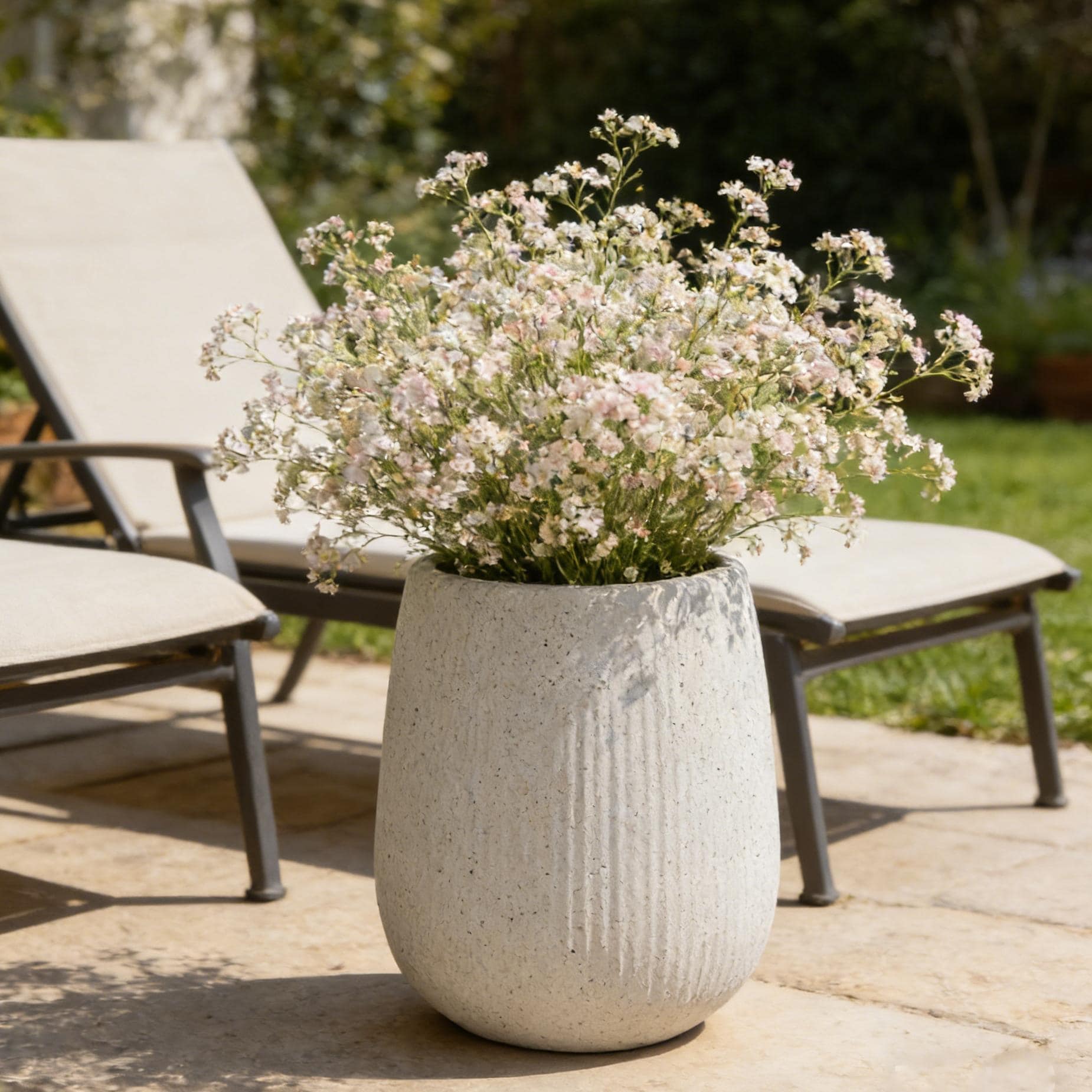 GDFStudio - 13.38" Round Modern MGO Planter Pot with Drainage Holes for Indoor Outdoor Garden Patio