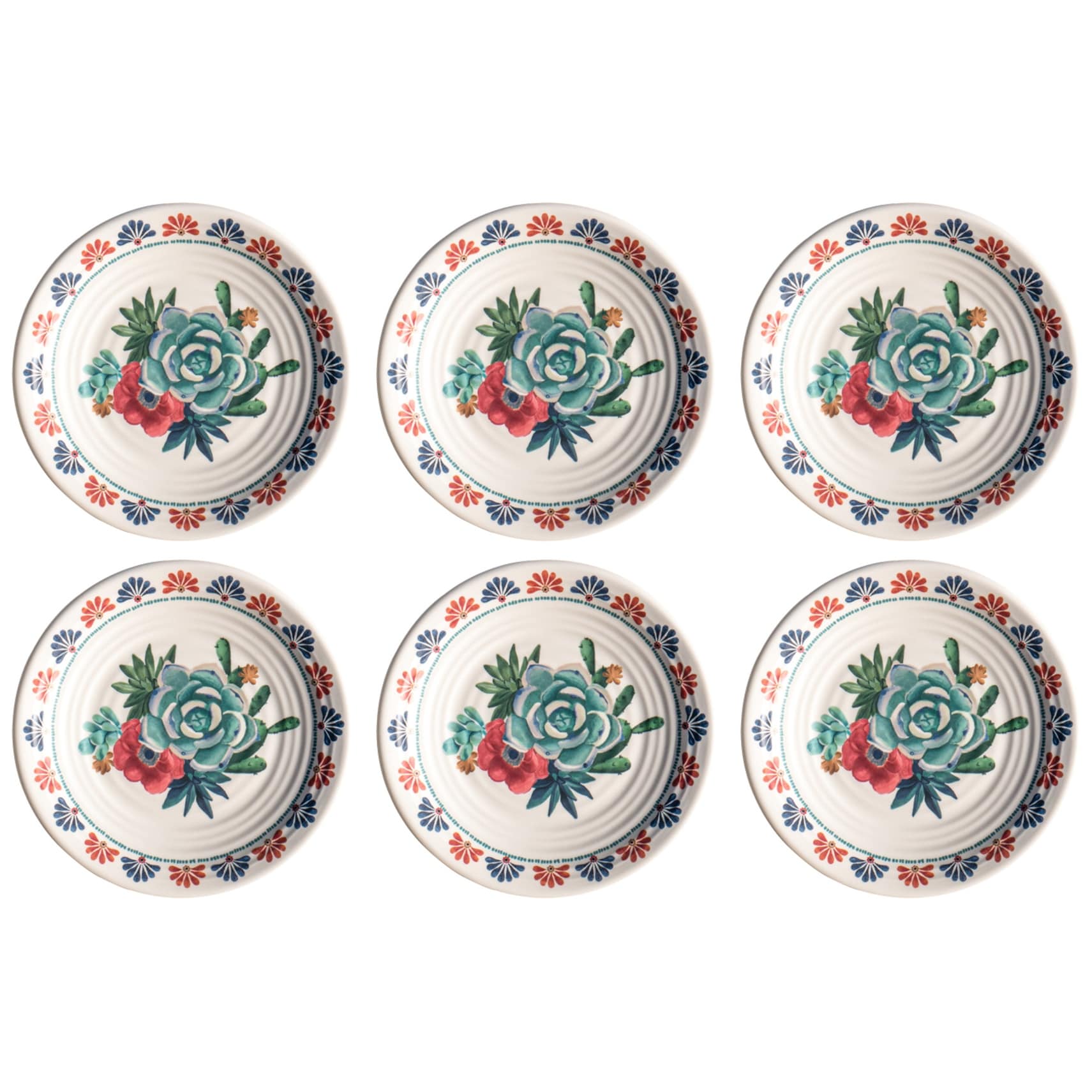 Abode Homewares Desert Succulent NewWave Melamine Salad Plate - Cream - 8.5" - Set of 6