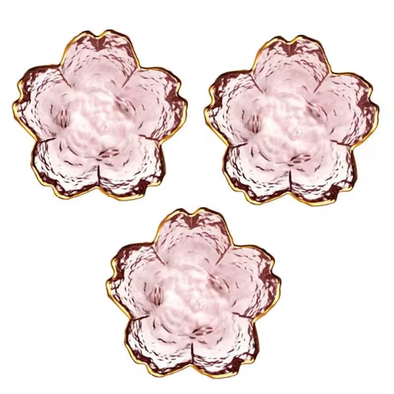 Japanese Style Glass Dessert Plates With Golden Rim Mini Sakura Bowls 3 piece Set