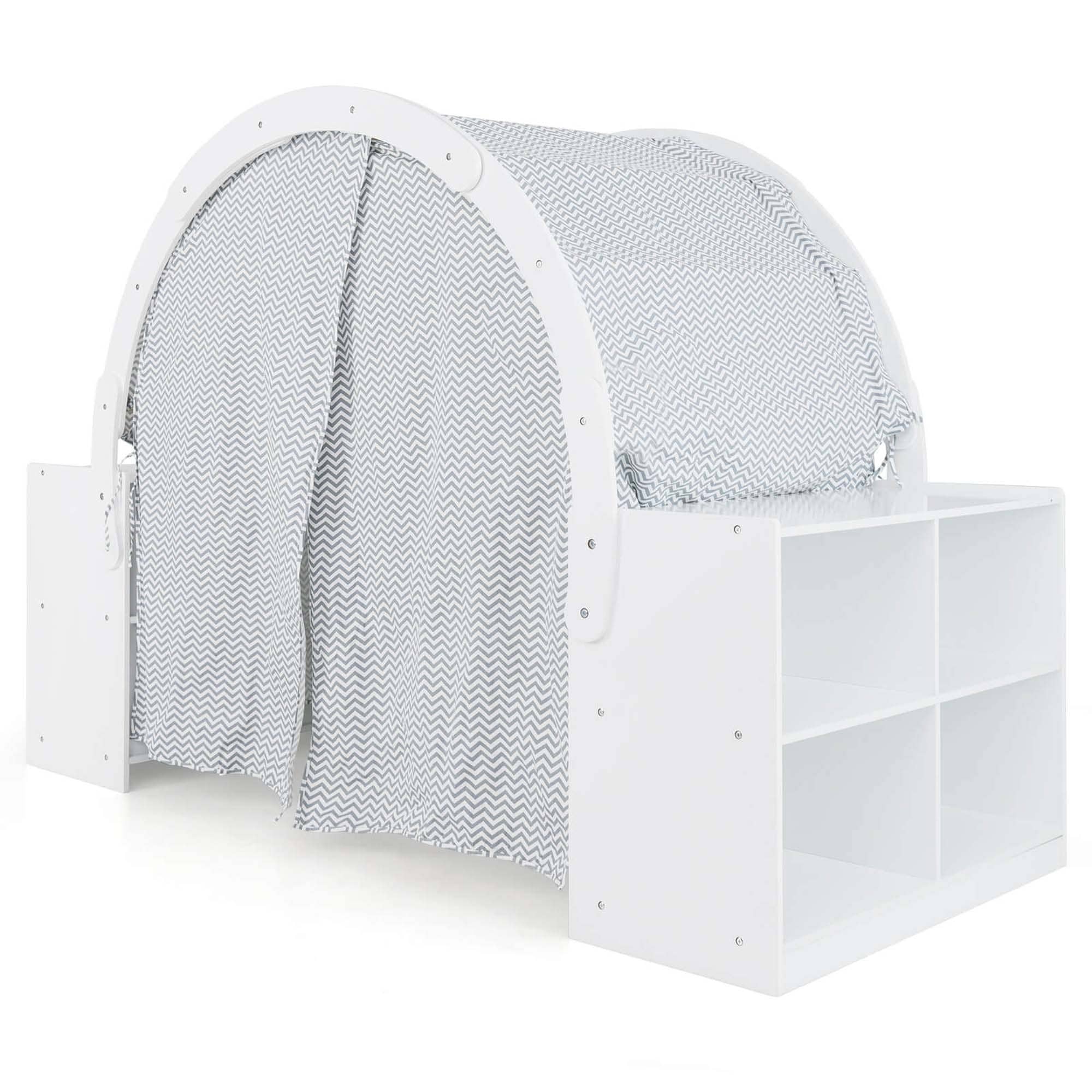 Kids Playhouse 3-in-1 w/8 Cubbies Mattress Space & Curtain Shades - White