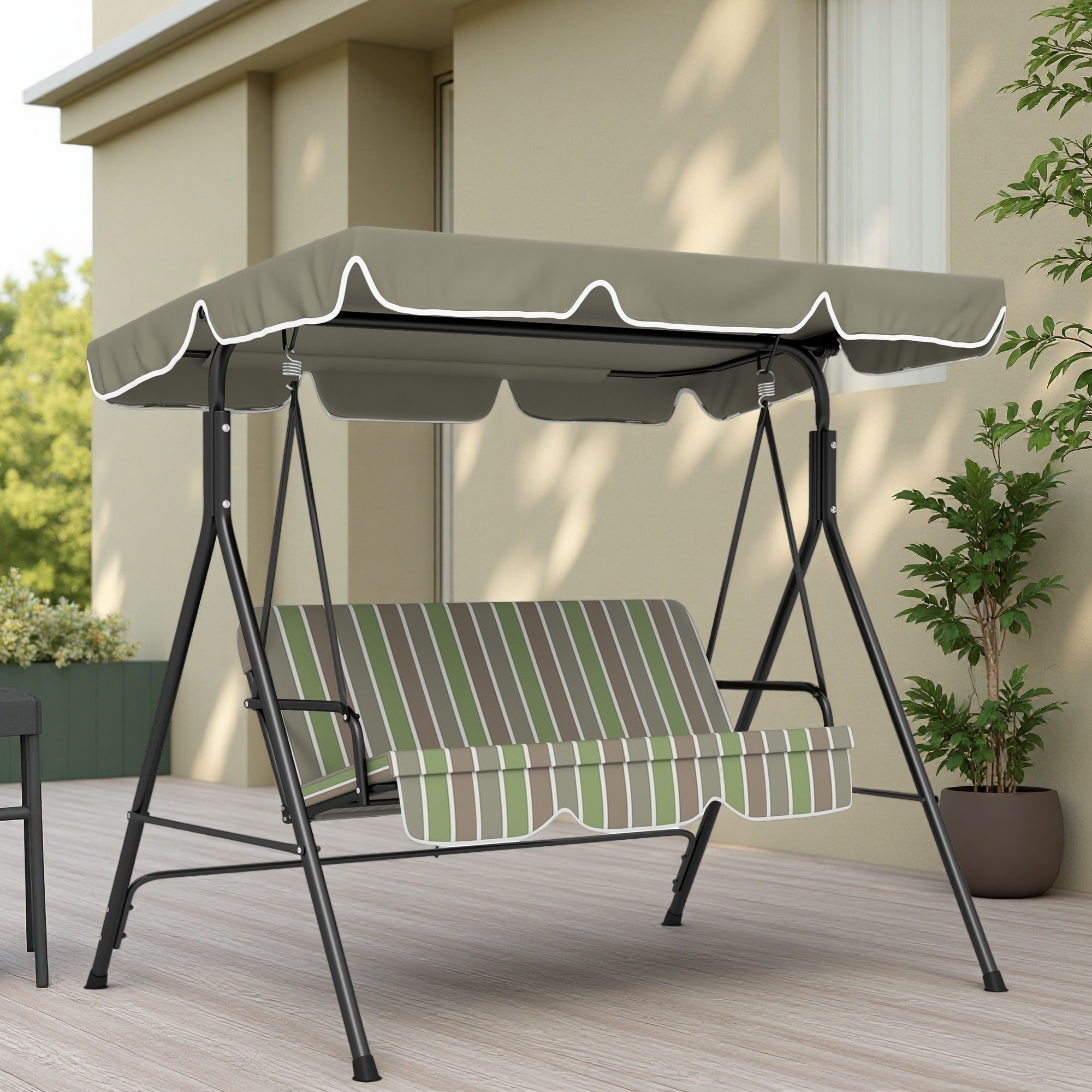 Steel Frame Patio Swing with Removable Cushion and Adjustable Tilt Canopy (3-Seat)