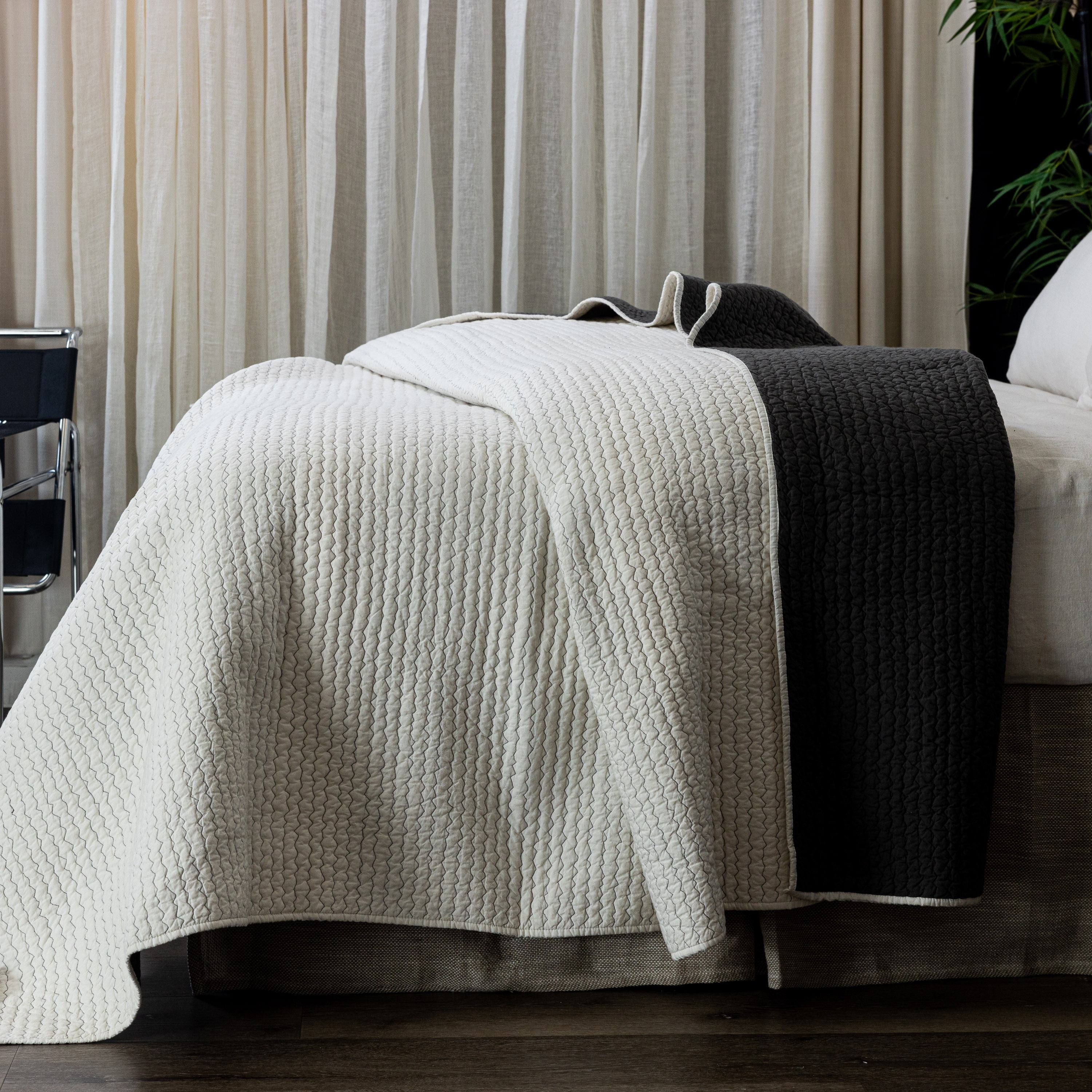 Jade Quilt, Ivory/Charcoal, King