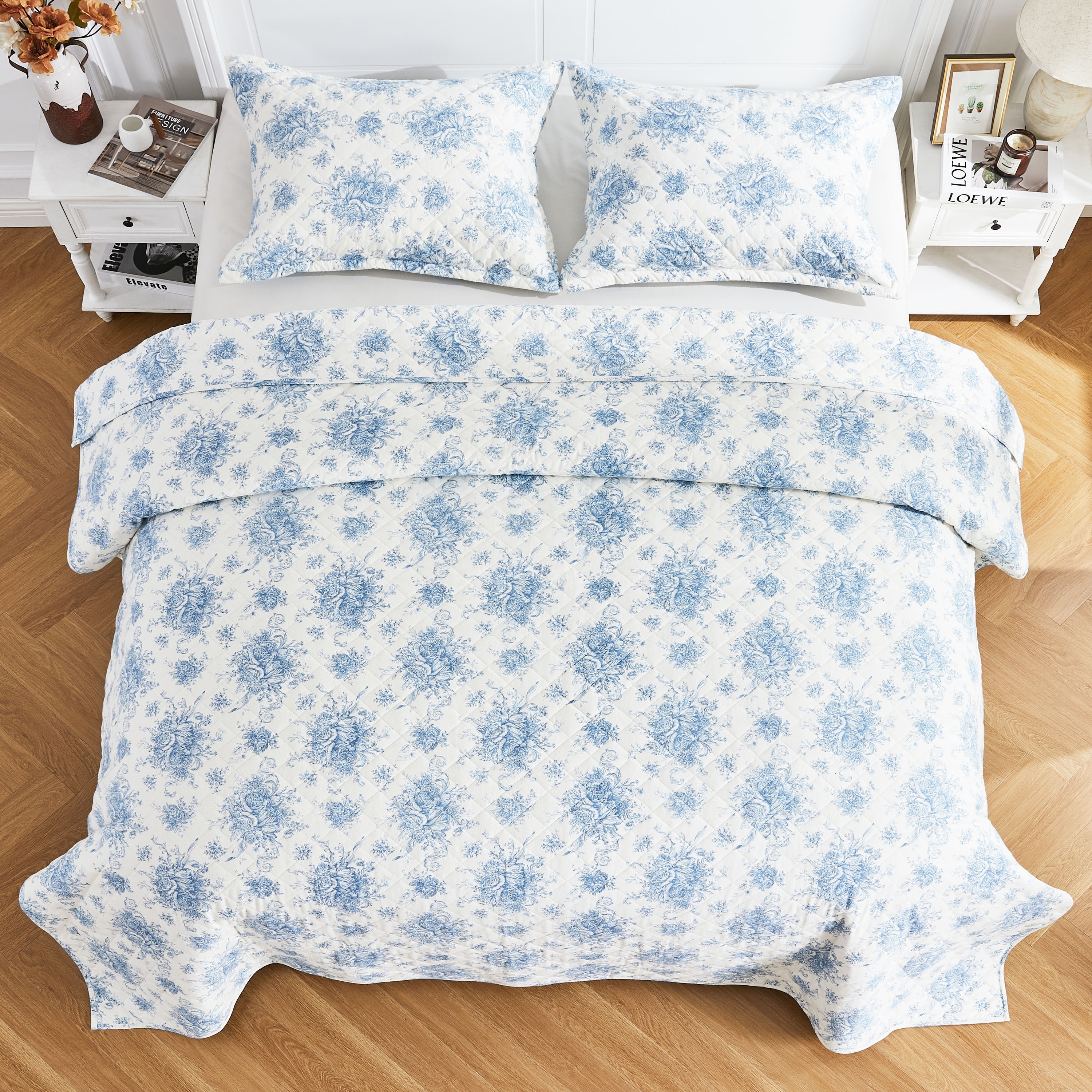 3 Piece Printed Reversible Bedding Quilt Set- Quilt and 2 Shams, Soft & Lightweight Full/Queen,King