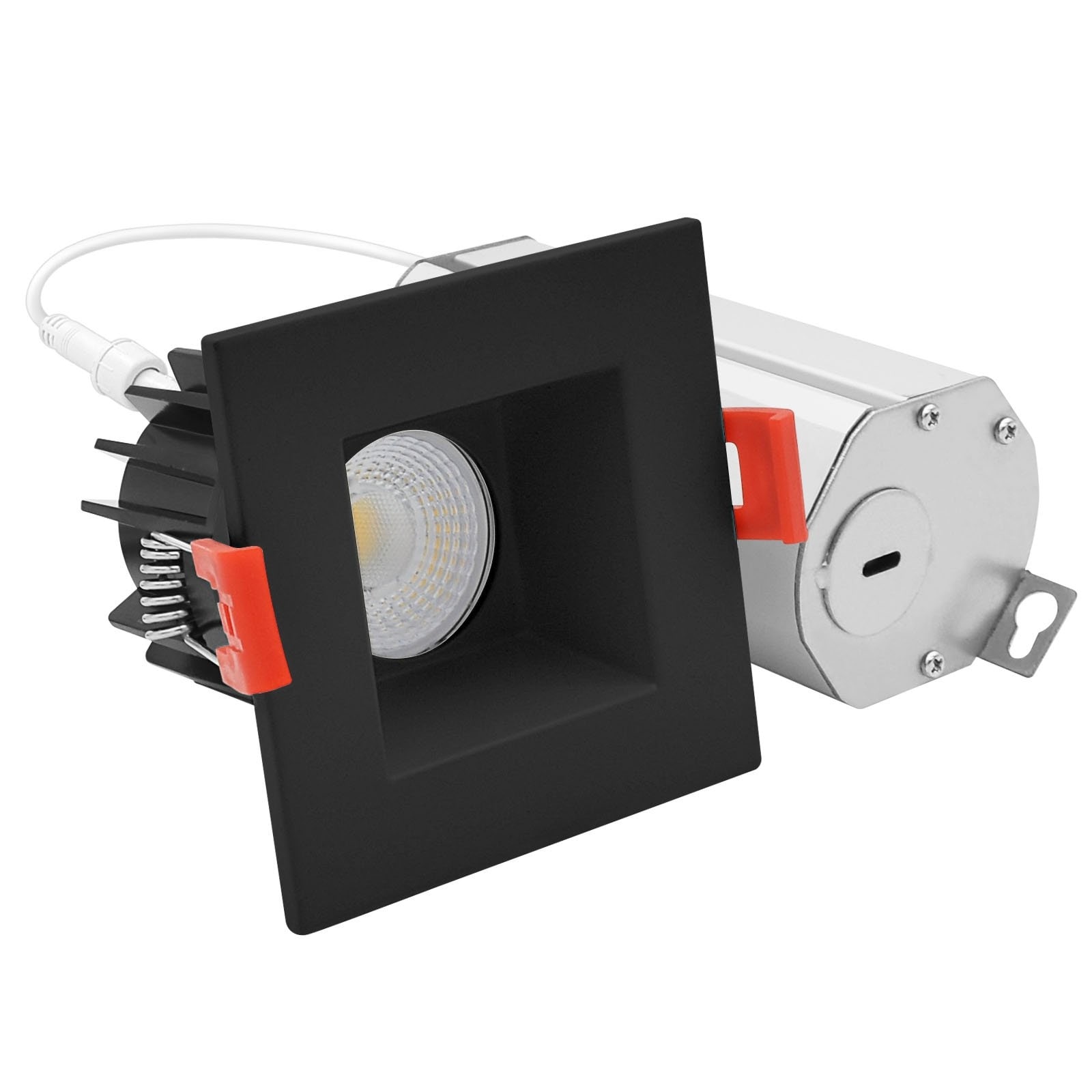 LUXRITE 2" LED Square Recessed light Interchangeable Black Trim,8W, 600LM, 5CCT, 60°, Dimmable Twist N’ Lock CRI90