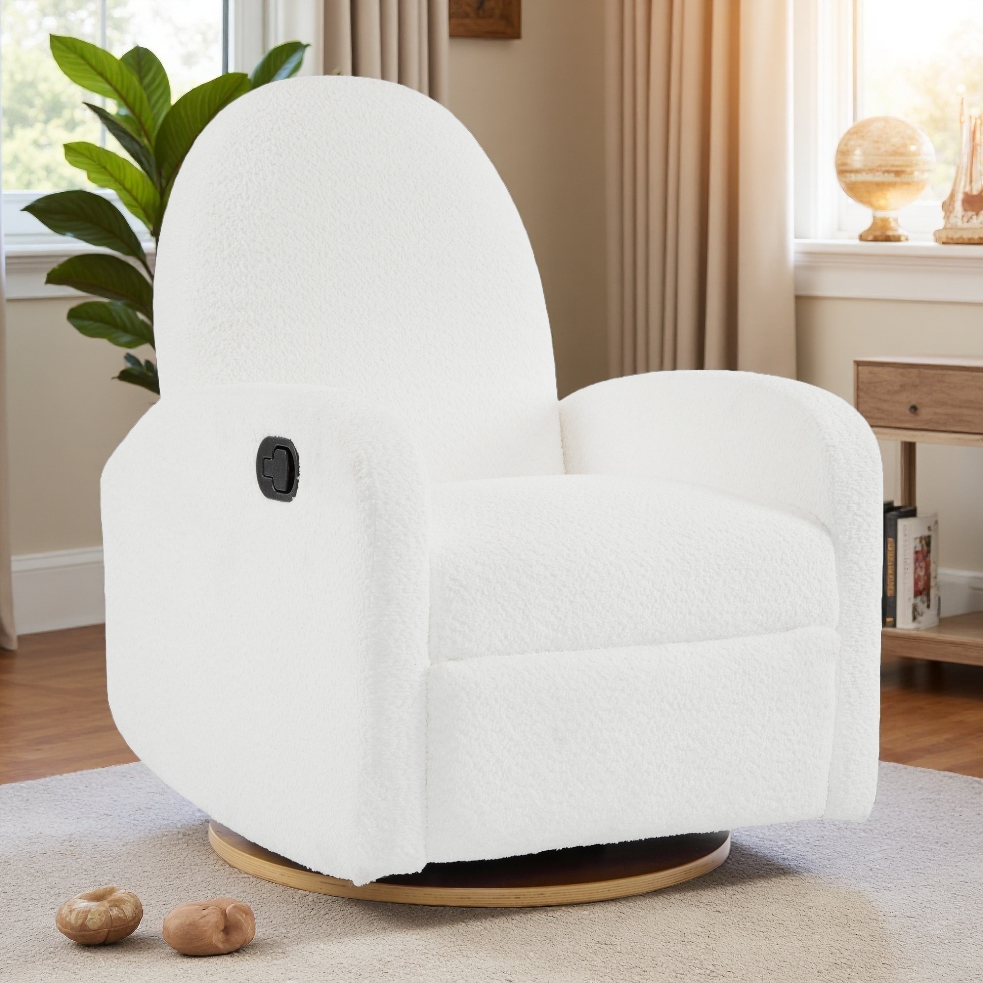 Swivel Rocker Recliner Chair with 360° Rotation ,Fabric Glider Recliner with Side Pockets, Manual Adjustable Backrest