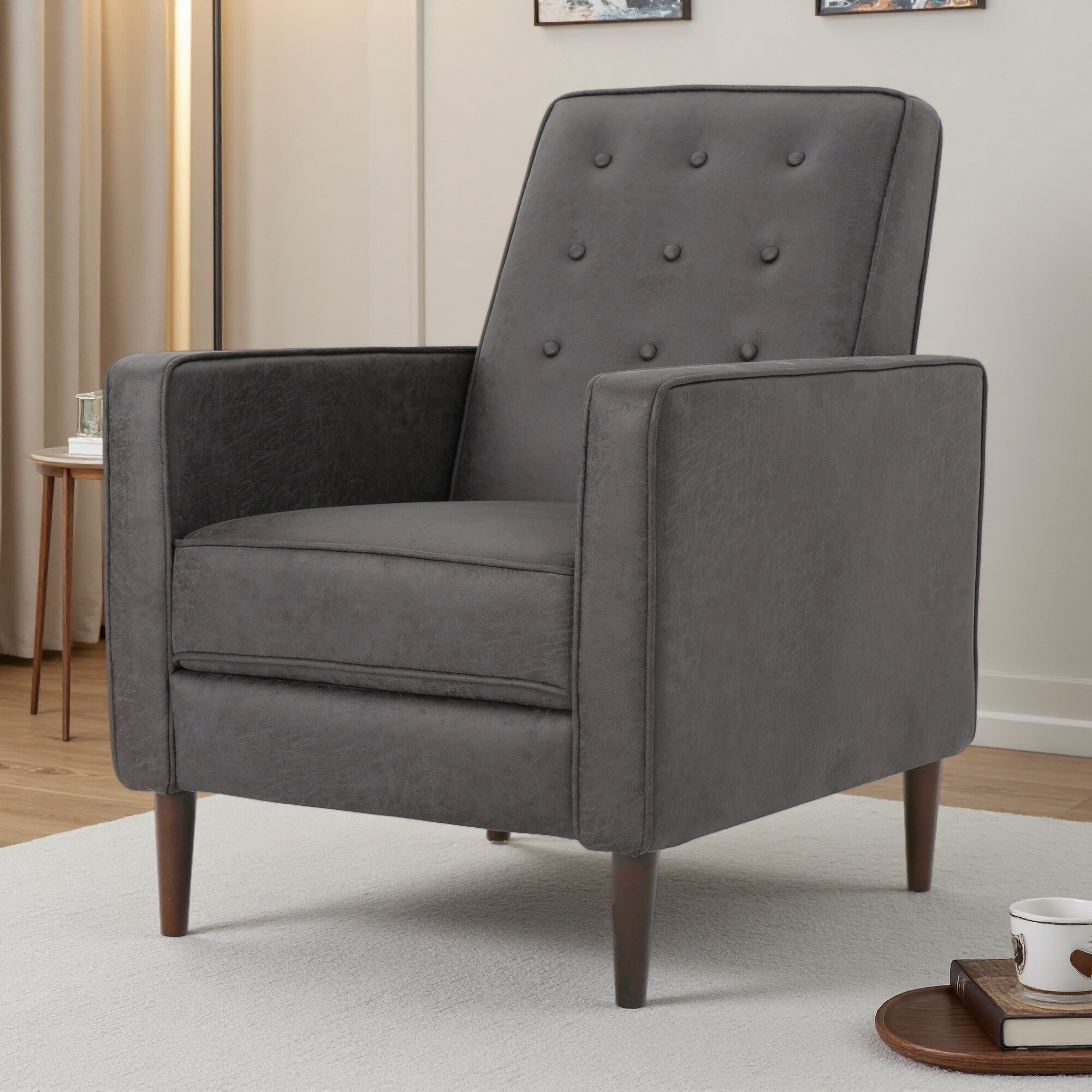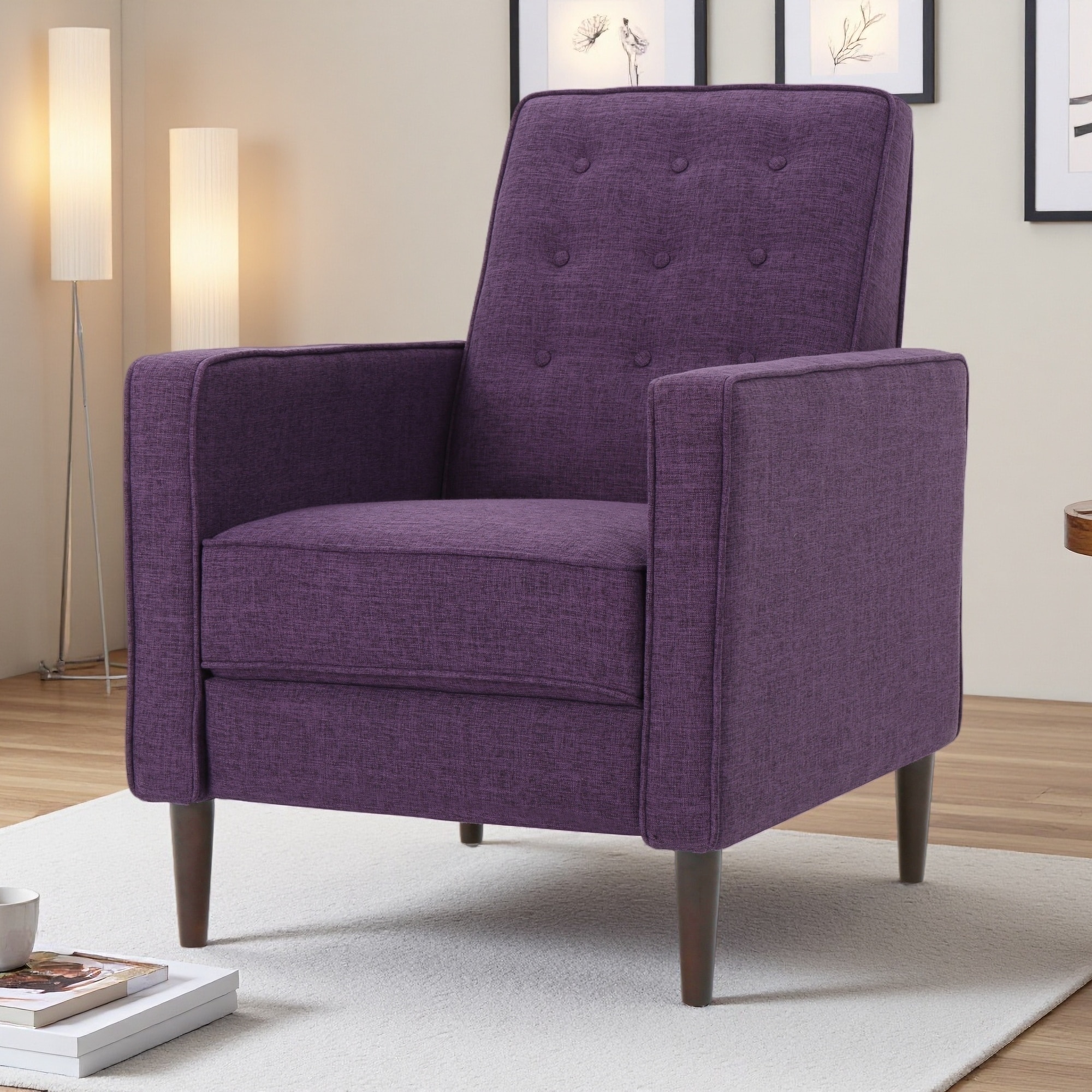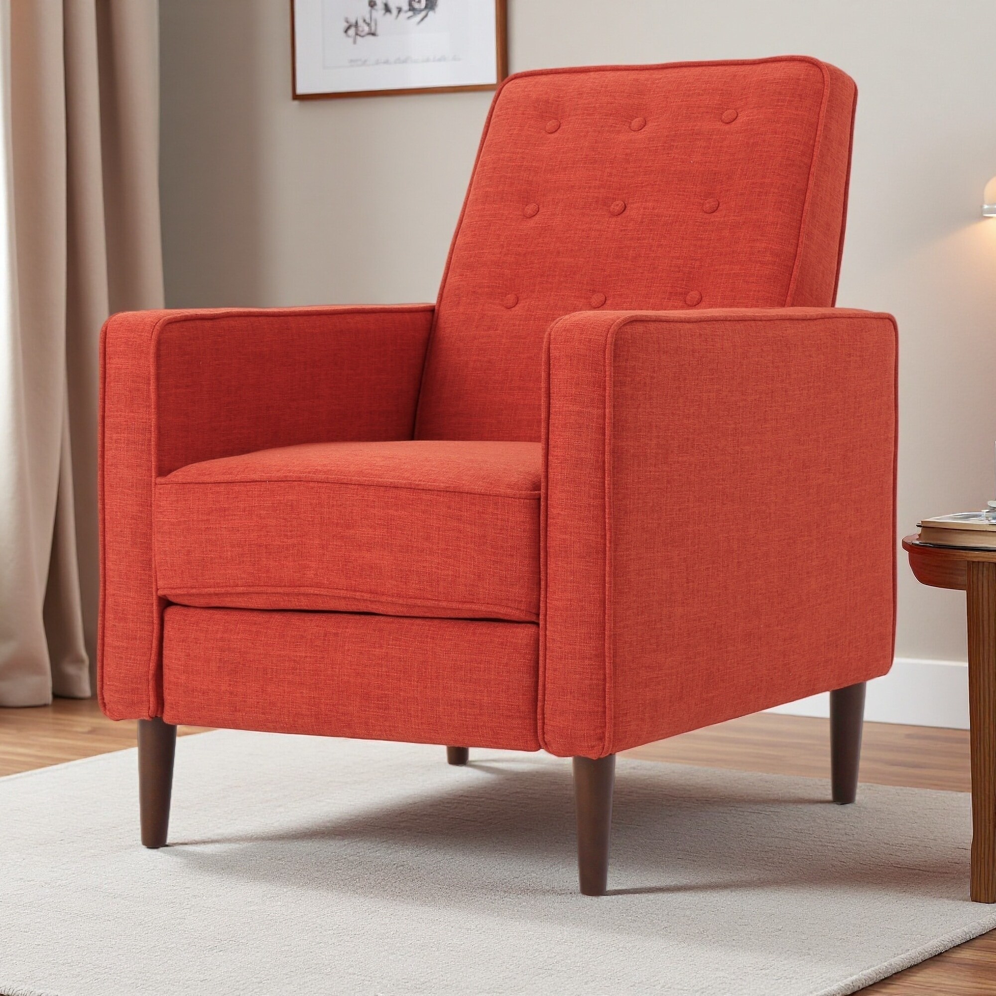 Upholstered Mid-Century Modern Recliner with Thicker Seat Cushion and Wooden Legs