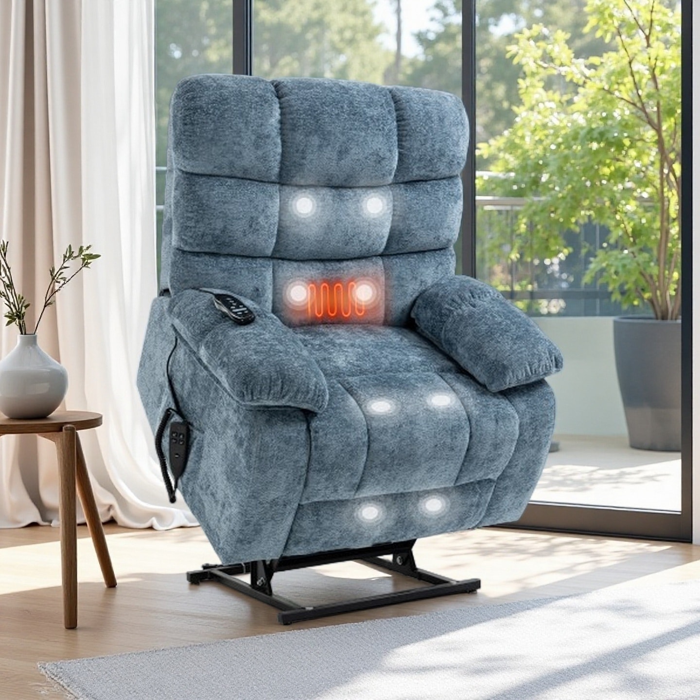 Dual Motor Electric Power Lift Recliner with Massage and Lumbar Heat, Power Remote, Medium-Firm Chenille Upholstery