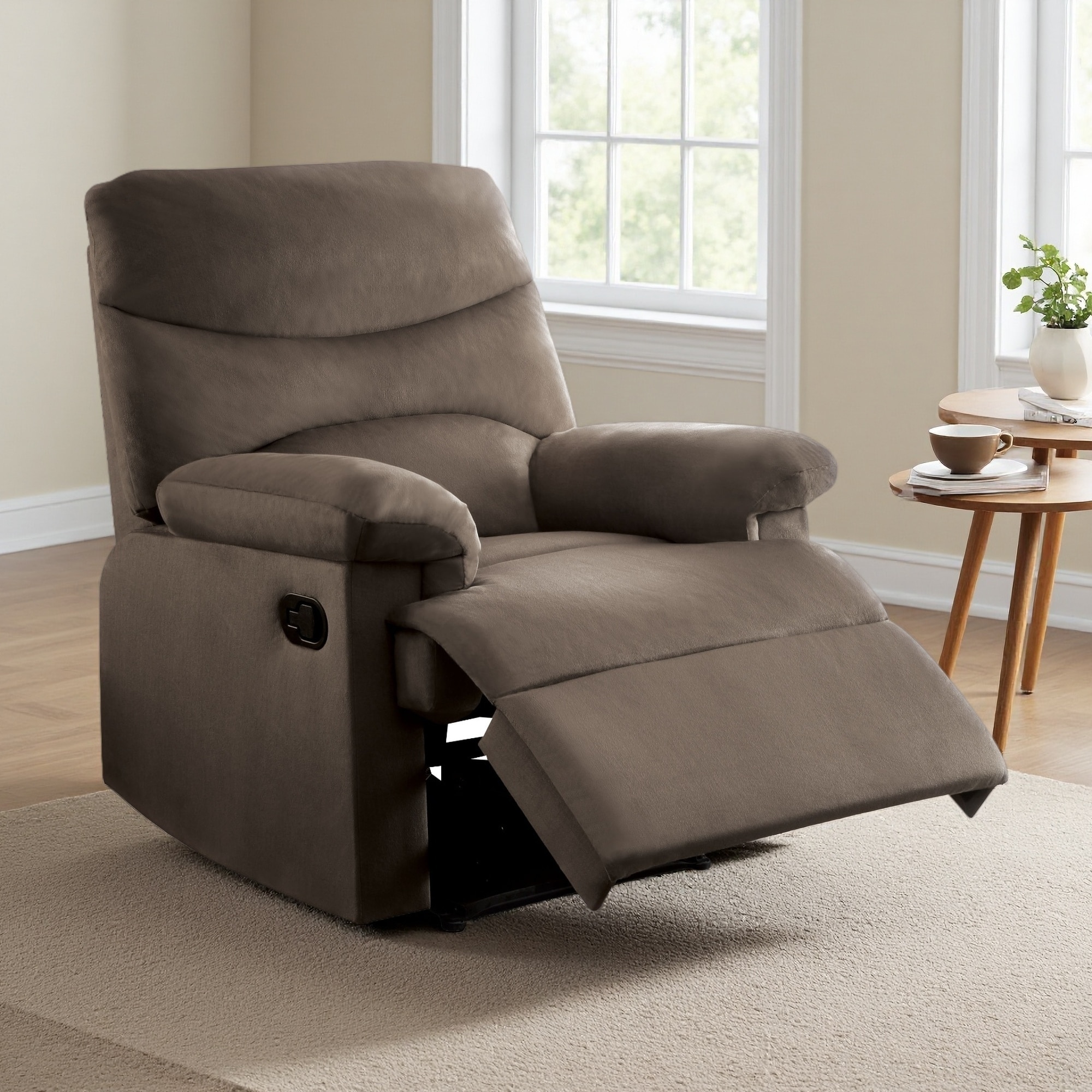 Roomfitters Luxurious Manual Recliner Chair in Chocolate with Skin-Friendly Fabric and Dual Cup Holders