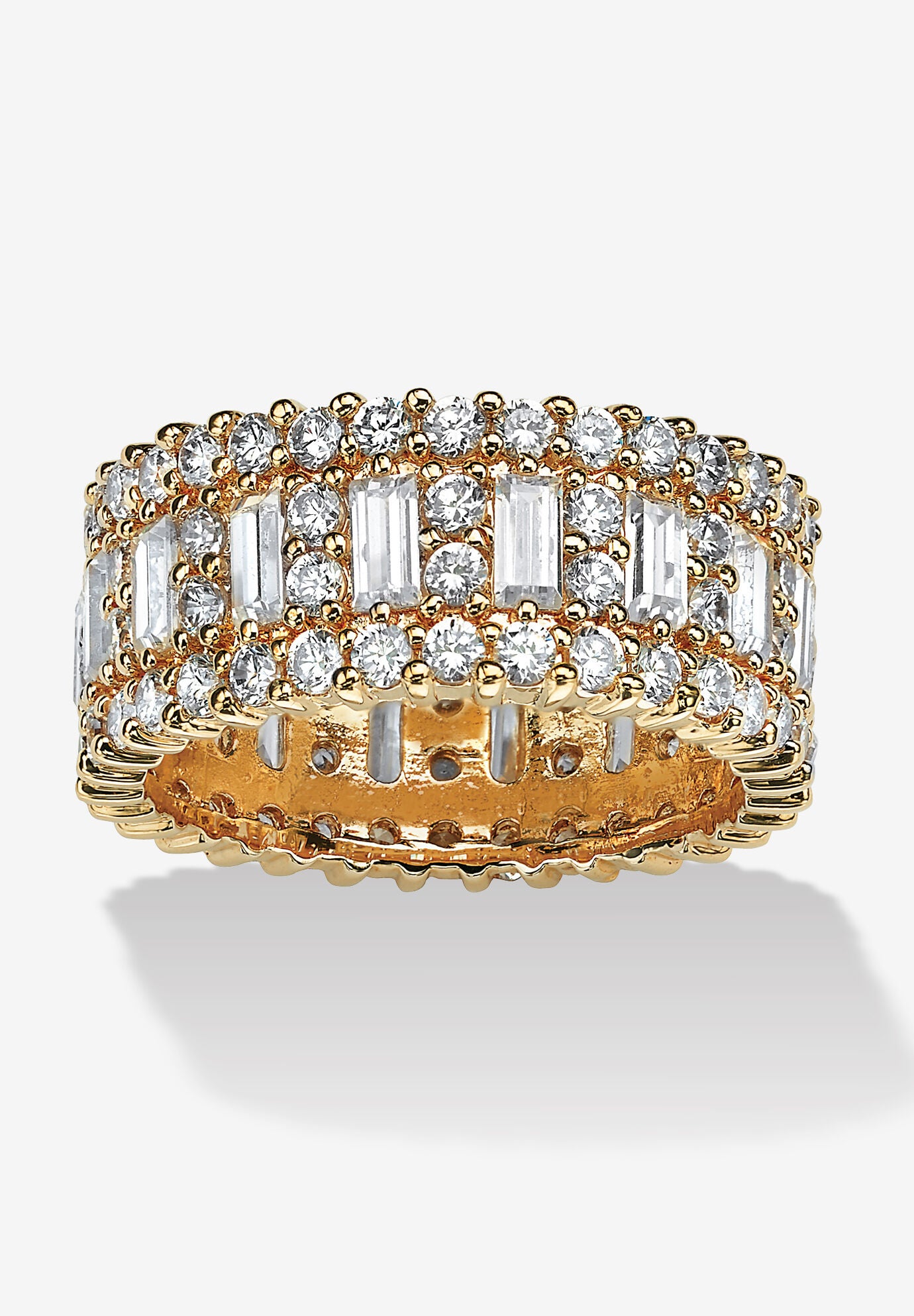 Women's 4.80 Tcw Emerald-Cut Cubic Zirconia Yellow Gold-Plated Eternity Ring by PalmBeach Jewelry in Gold (Size 7)