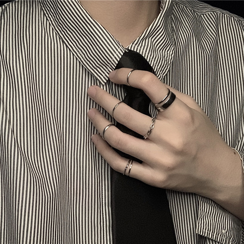 7PCS Korea Fashion Mixed Minimalist Ring Set: Geometric Round Metal Gold Silver Open Rings Women's Jewelry ZJ3357