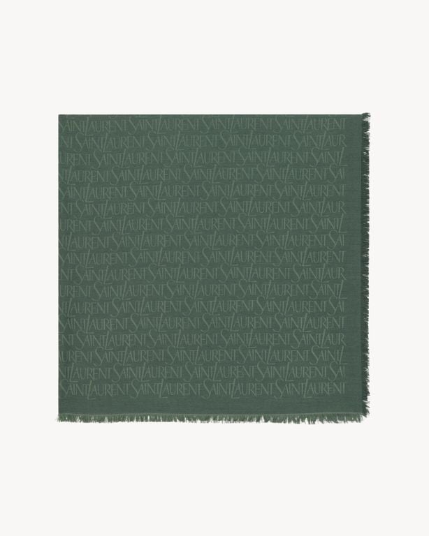 Silk-Wool Logo-Jacquard Scarf - Green - Saint Laurent Scarves