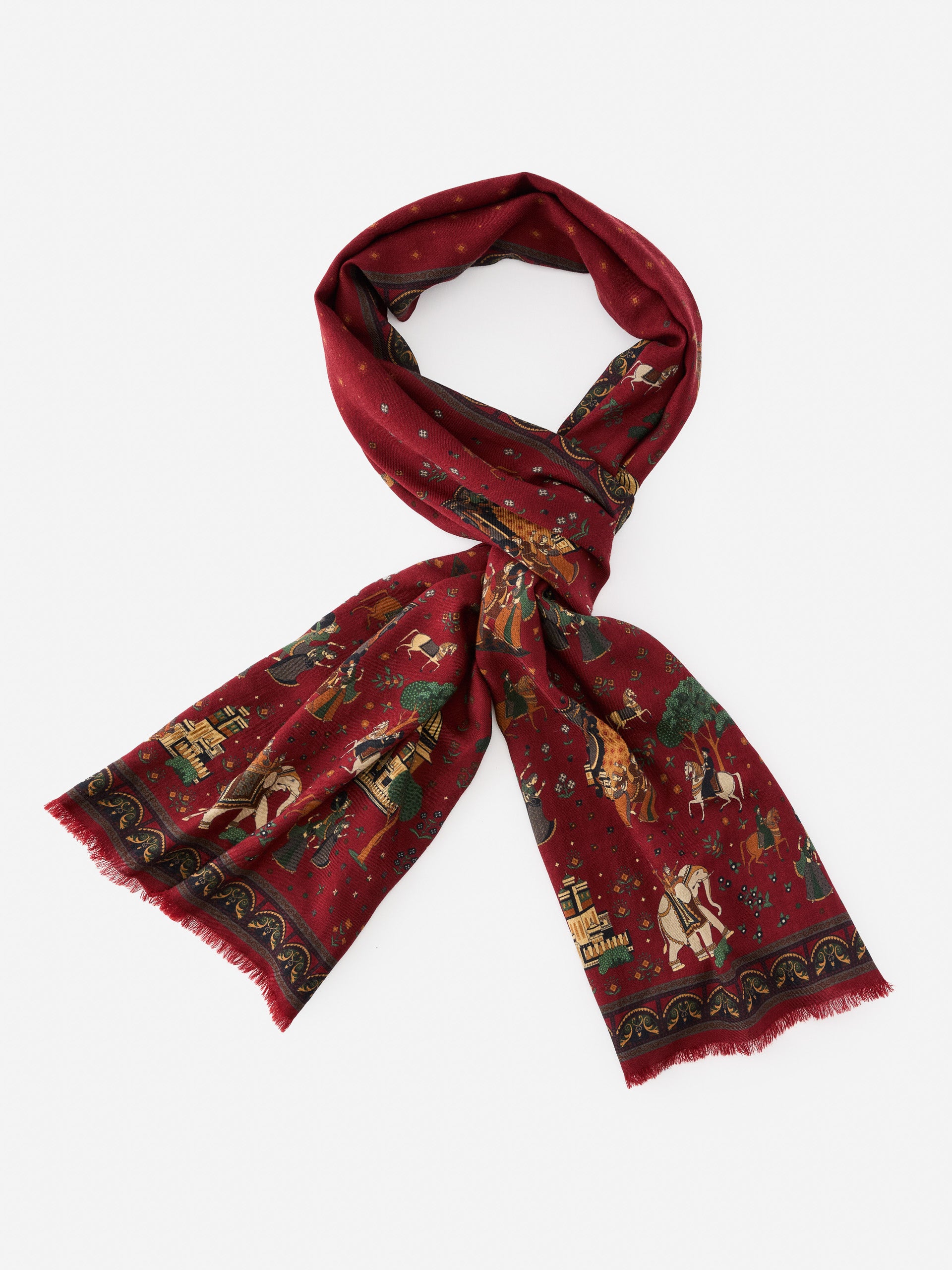 J.McLaughlin Men's Men's Scarf in Palace Pictorial Mahogany | Wool