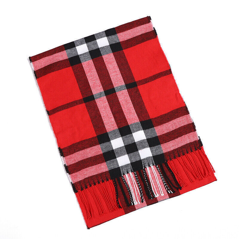 Plaid Cashmere Scarf Men Women Winter Plaid Red