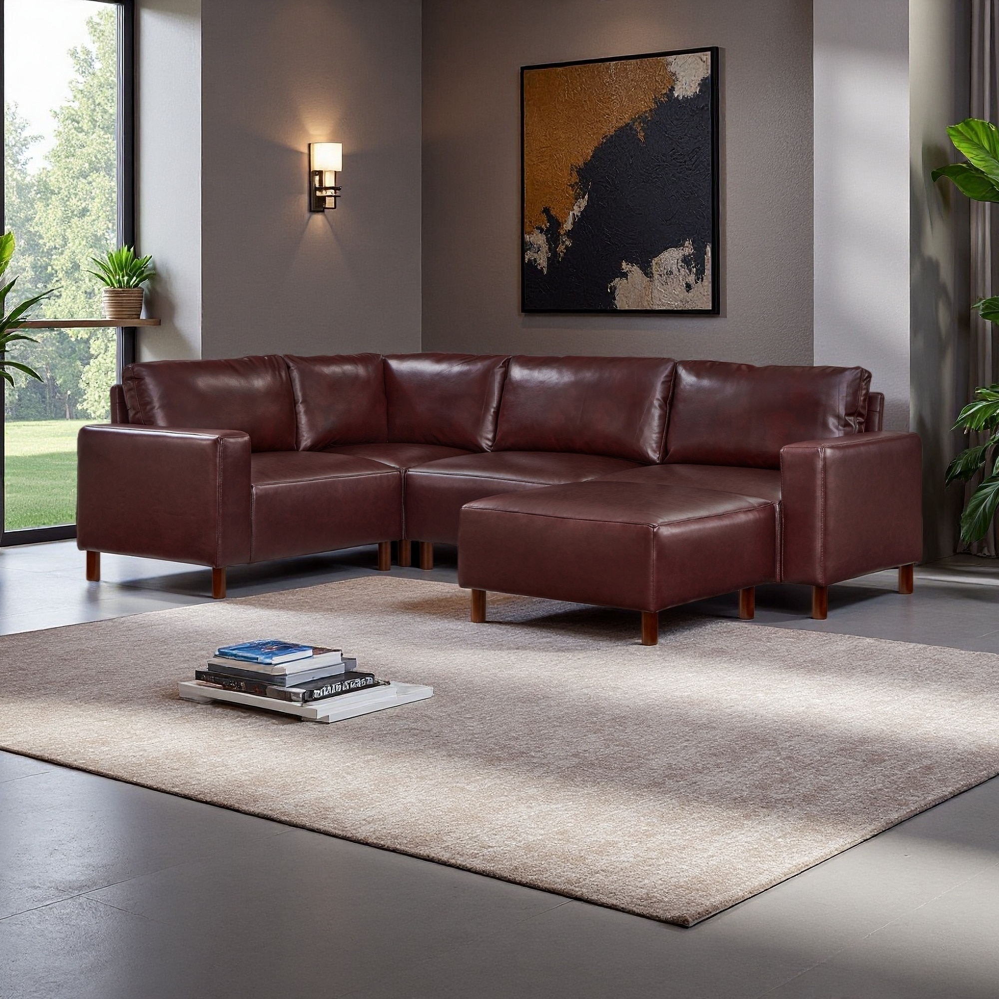 104" Breathable PU Leather Modular Sectional Sofa with Ottoman