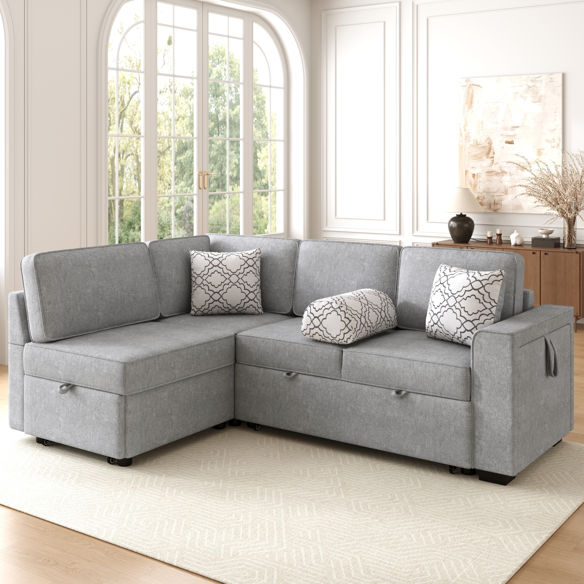L-Shape Sofa wPull Out Sofa Bed, Storage Seat, USB, Sleeper Sofa Bed