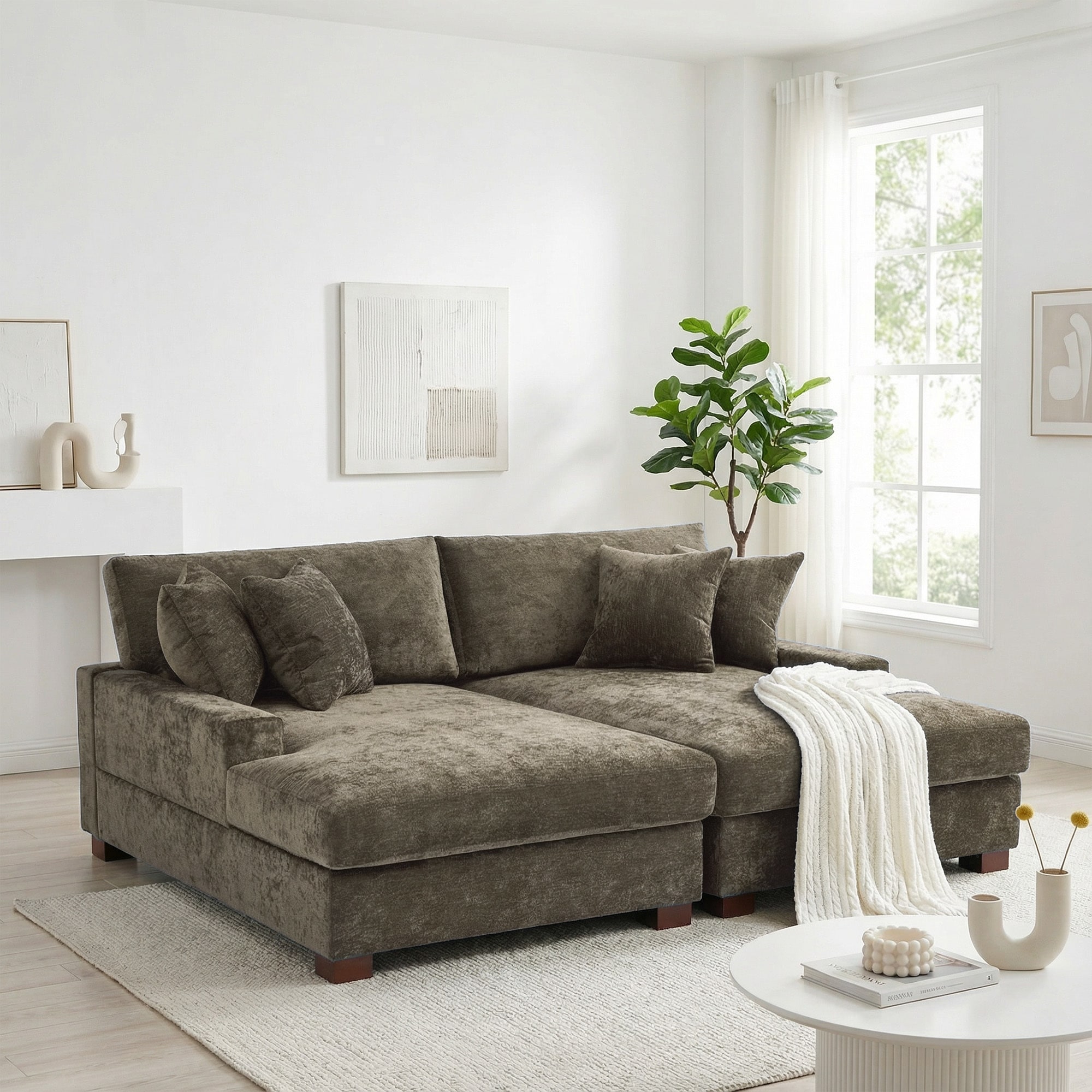 Modular Corduroy L Shaped Compressed Sofa with Movable Ottoman