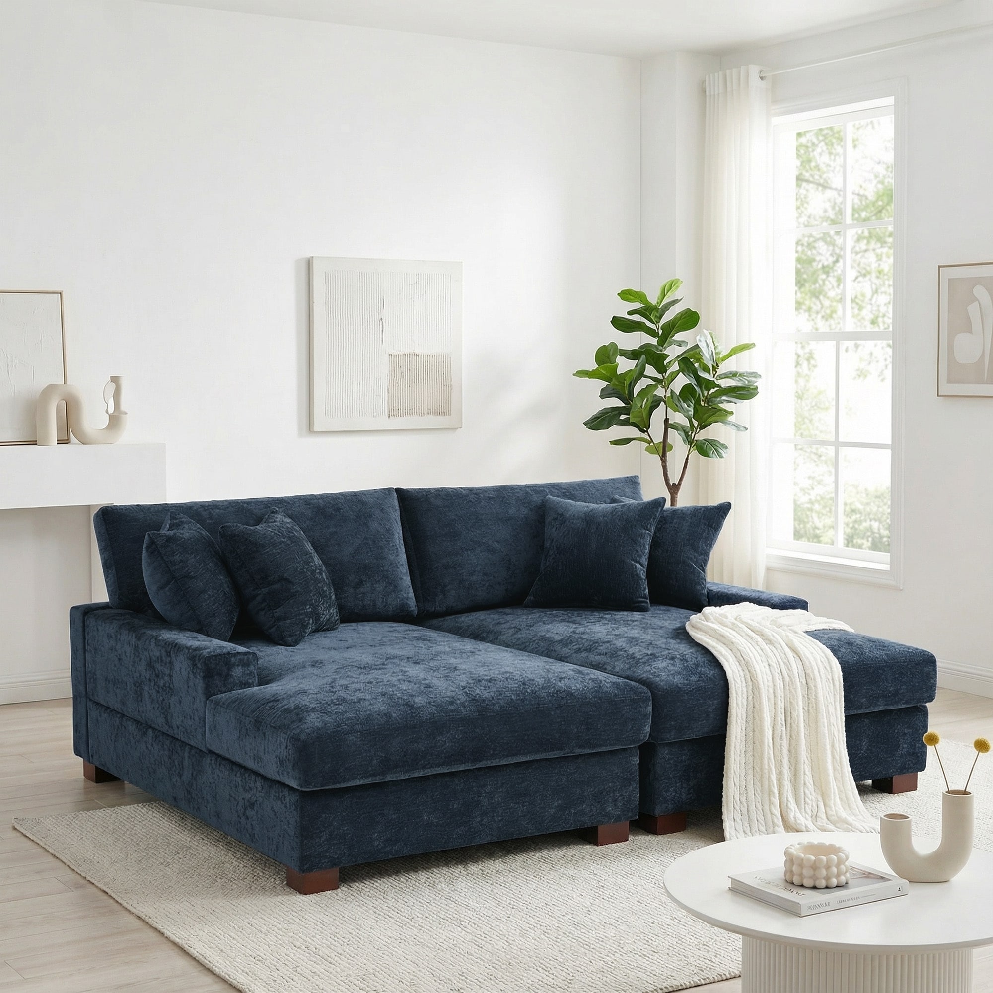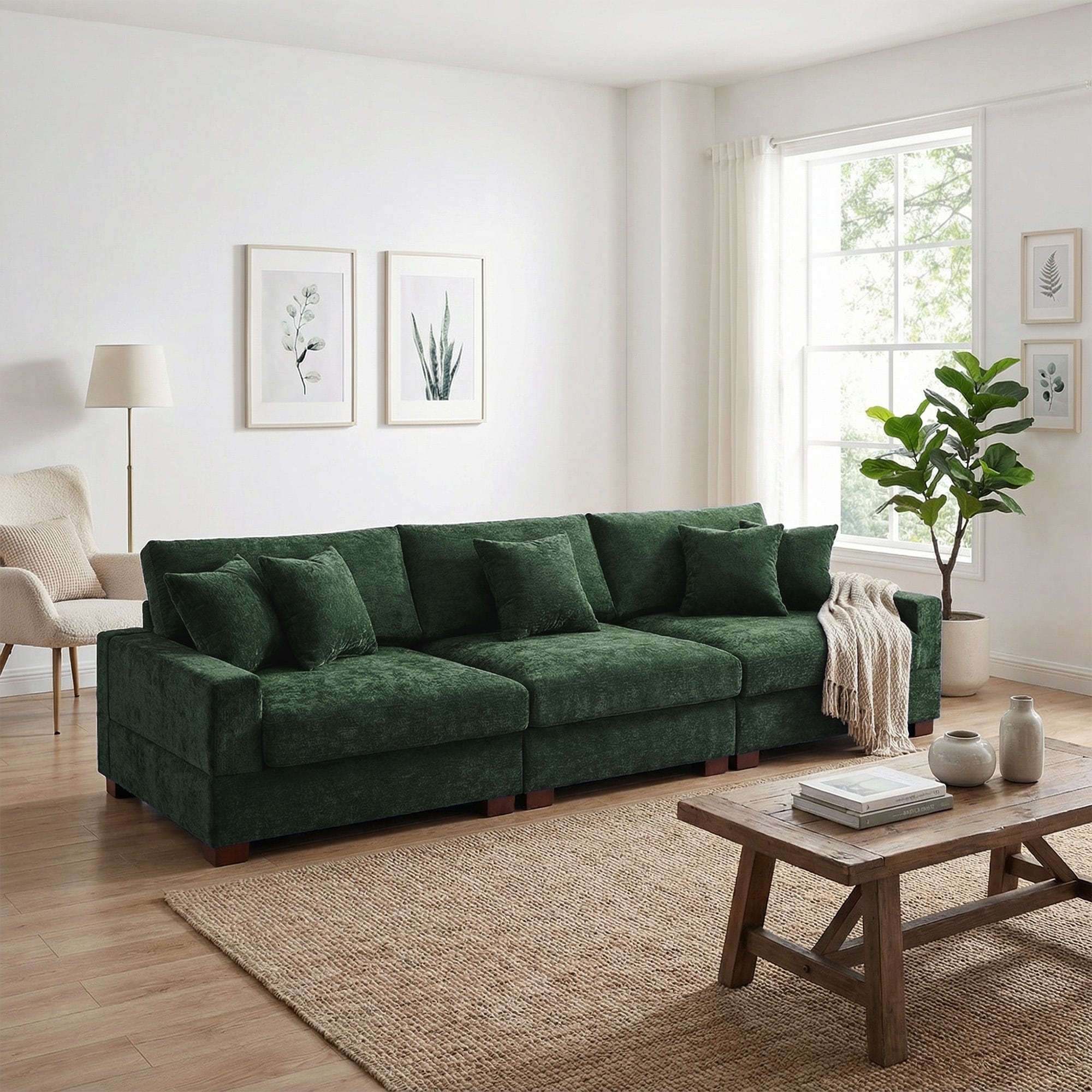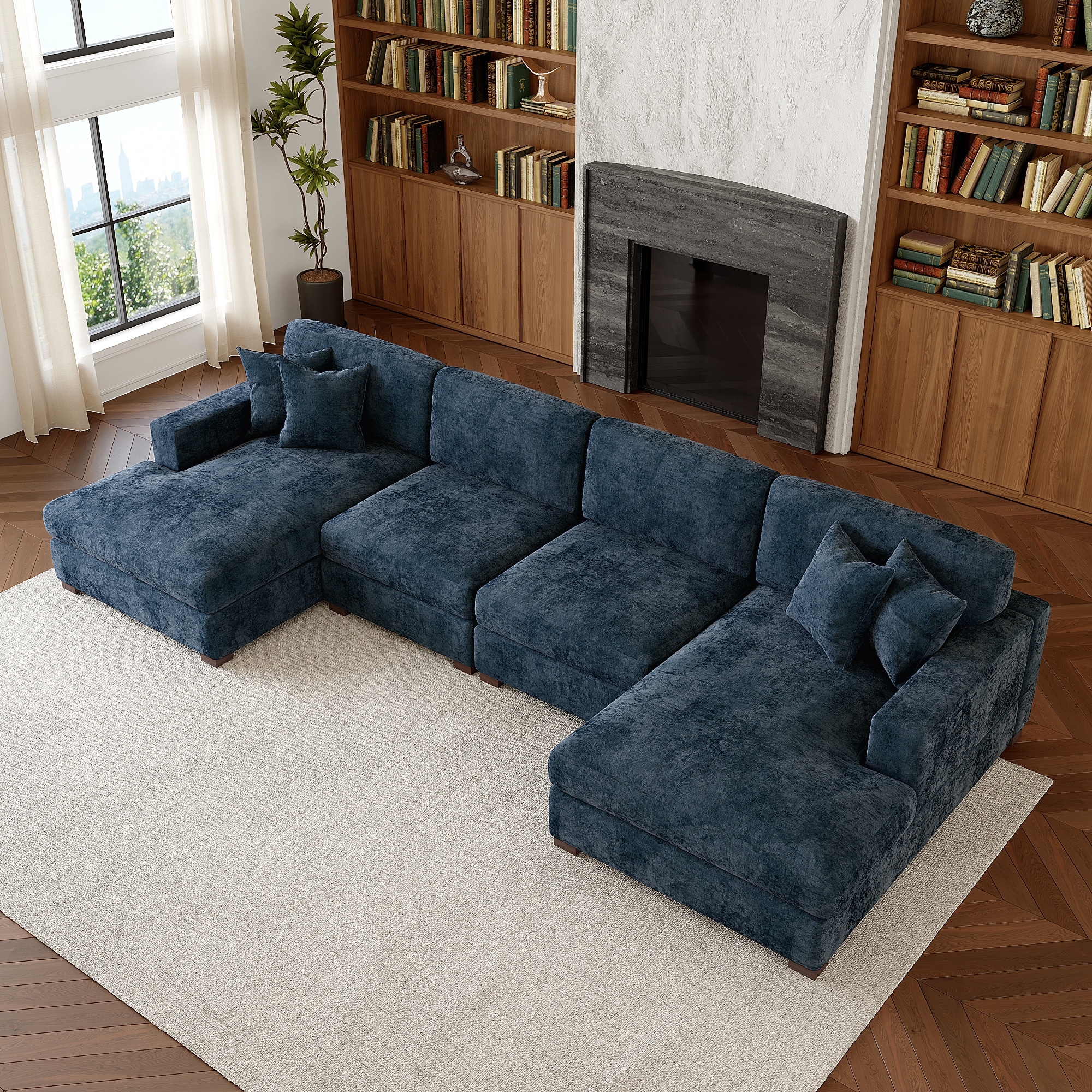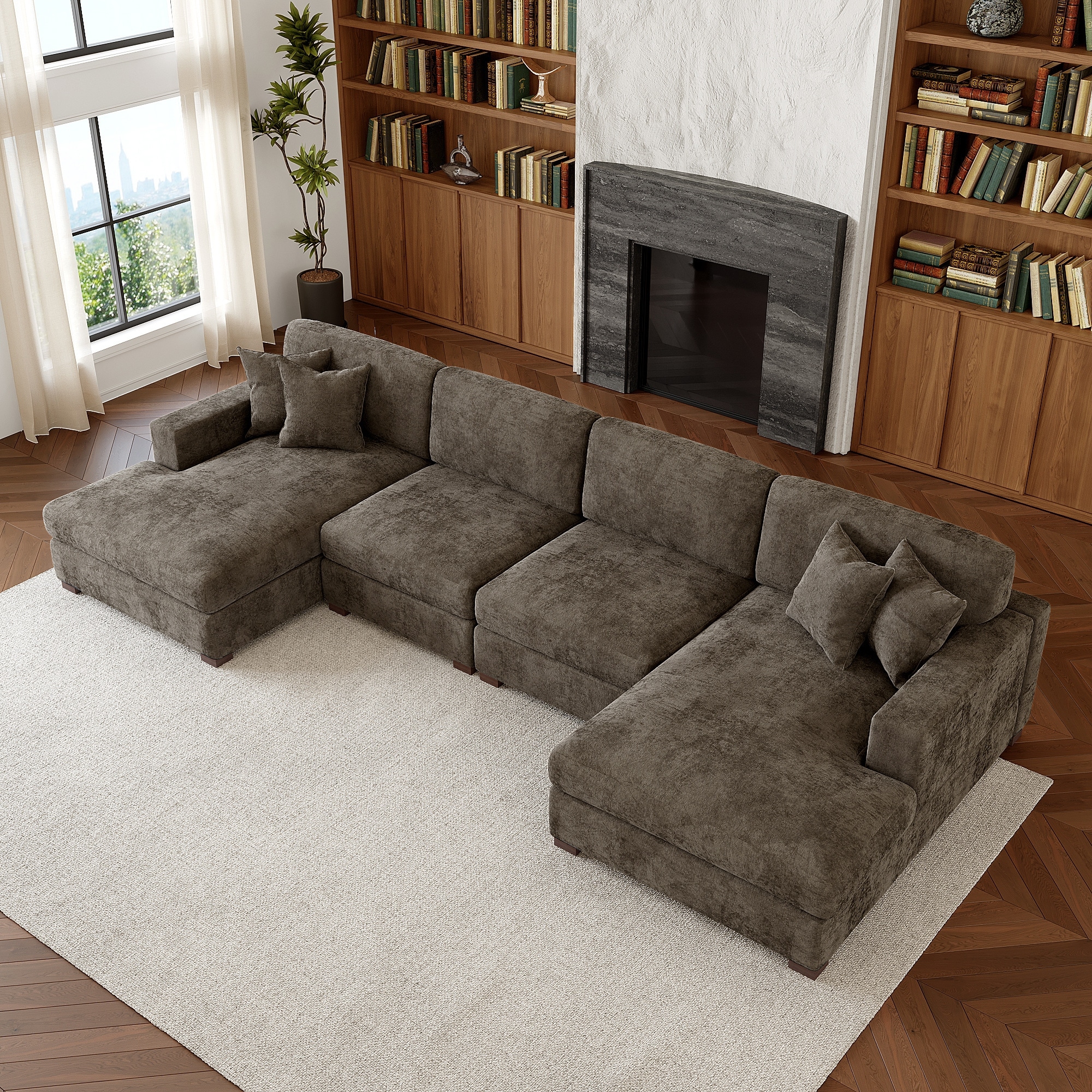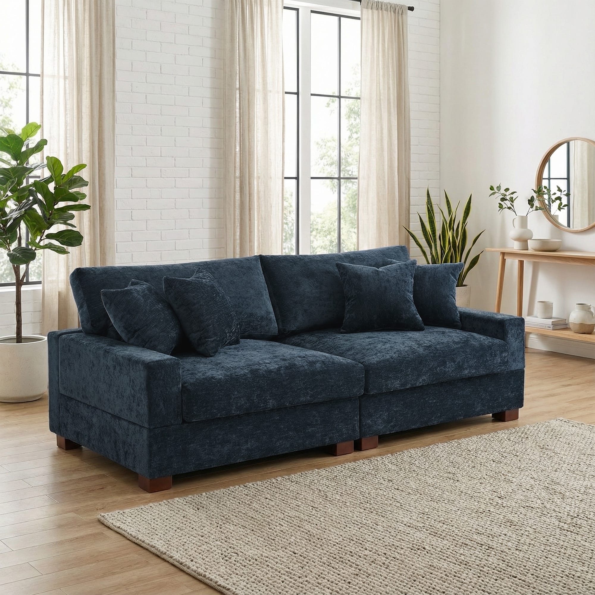 Oversized Chenille Modular Sectional Sofa With Deep Seat