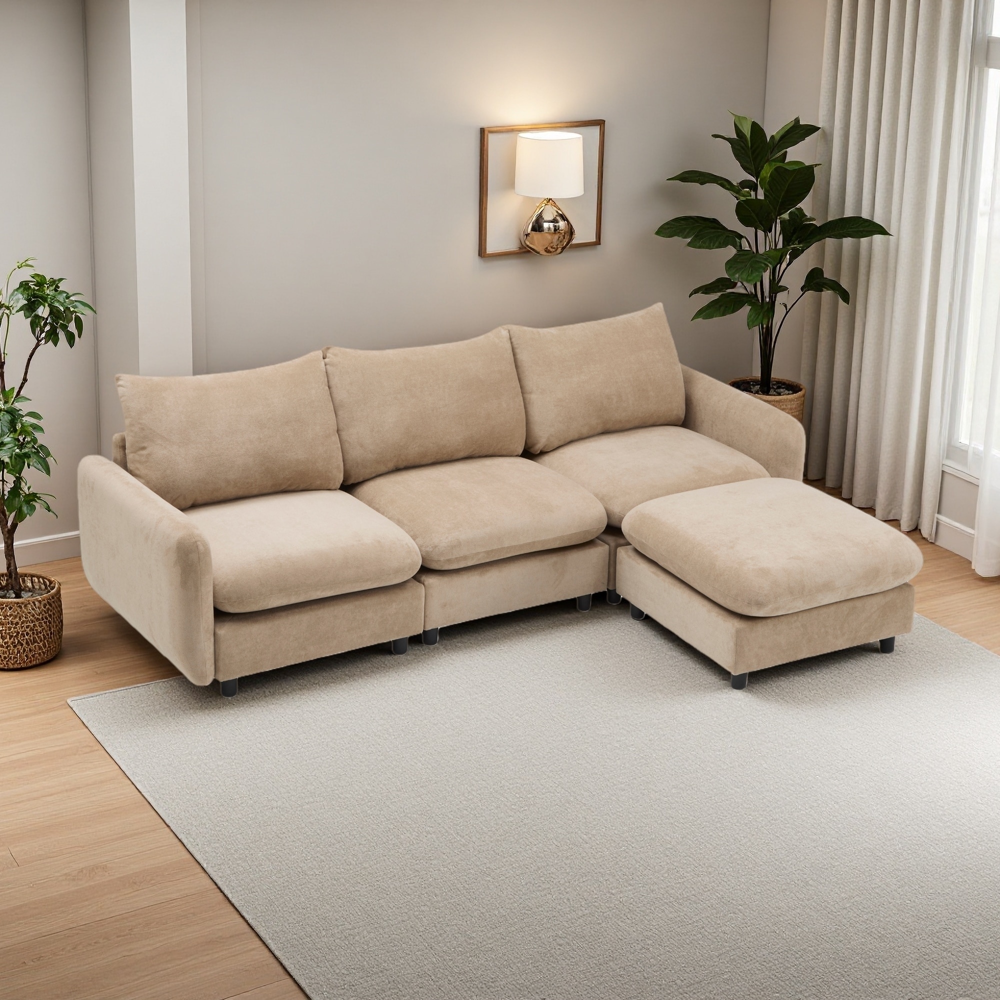 99.5" Velvet Modular L-Shape Sectional Sofa with Ottoman and Free Combination (4-Seater)
