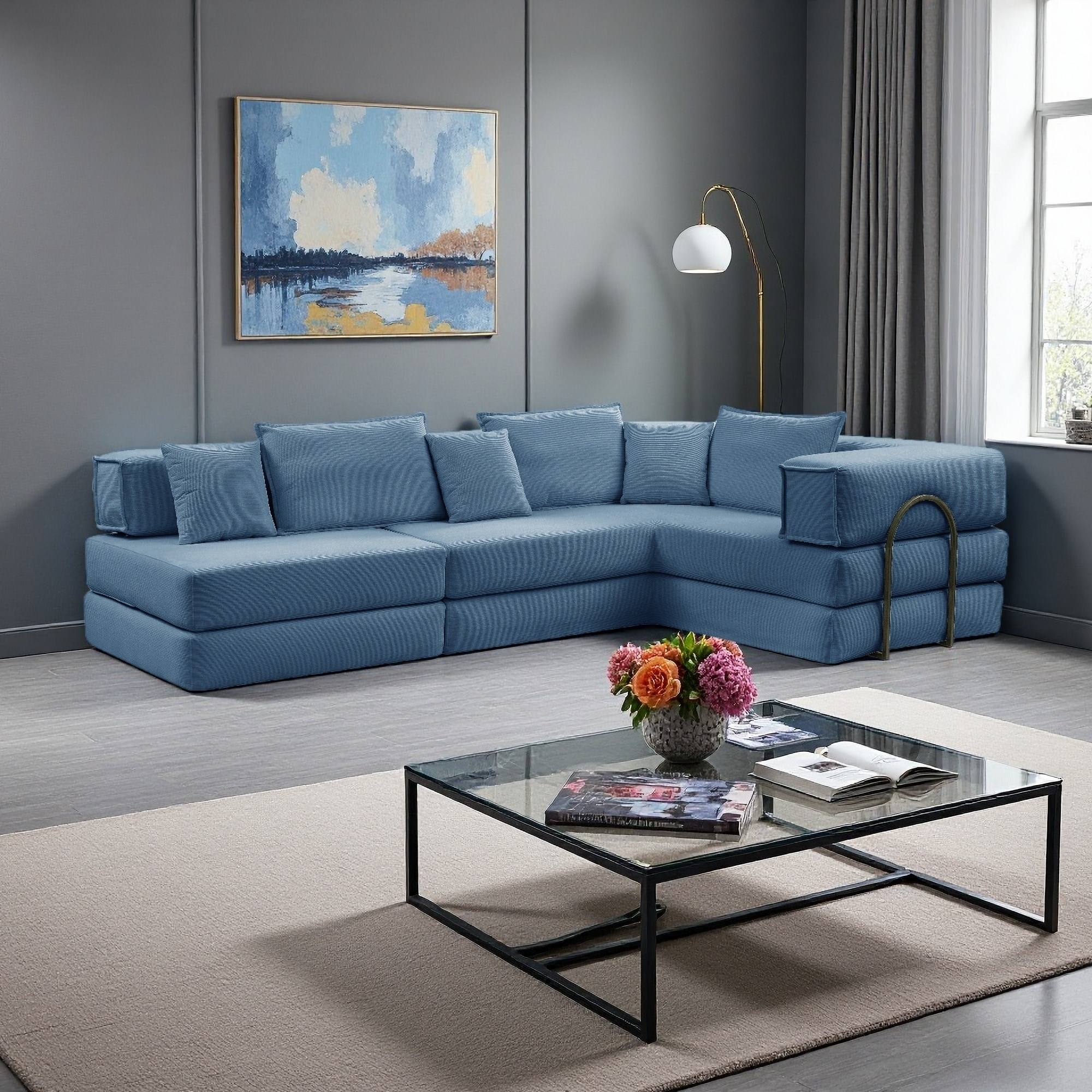 118.2" Modular L-Shaped Sectional Sofa with 6 Pillows (No Assembly Required)