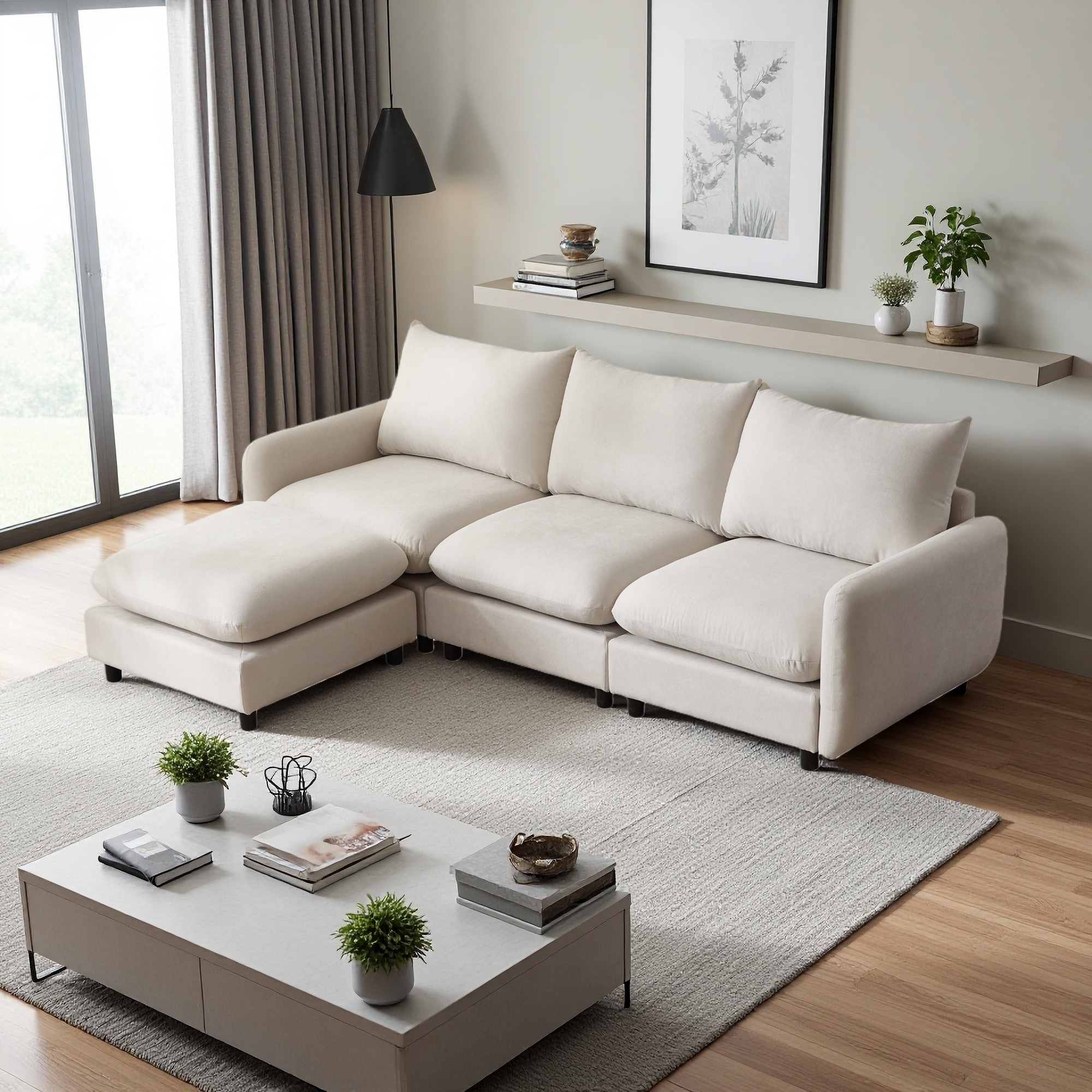 99.5" Fabric 4-Piece L-Shaped Modular Sectional Sofa with Ottoman and Solid Wood Frame