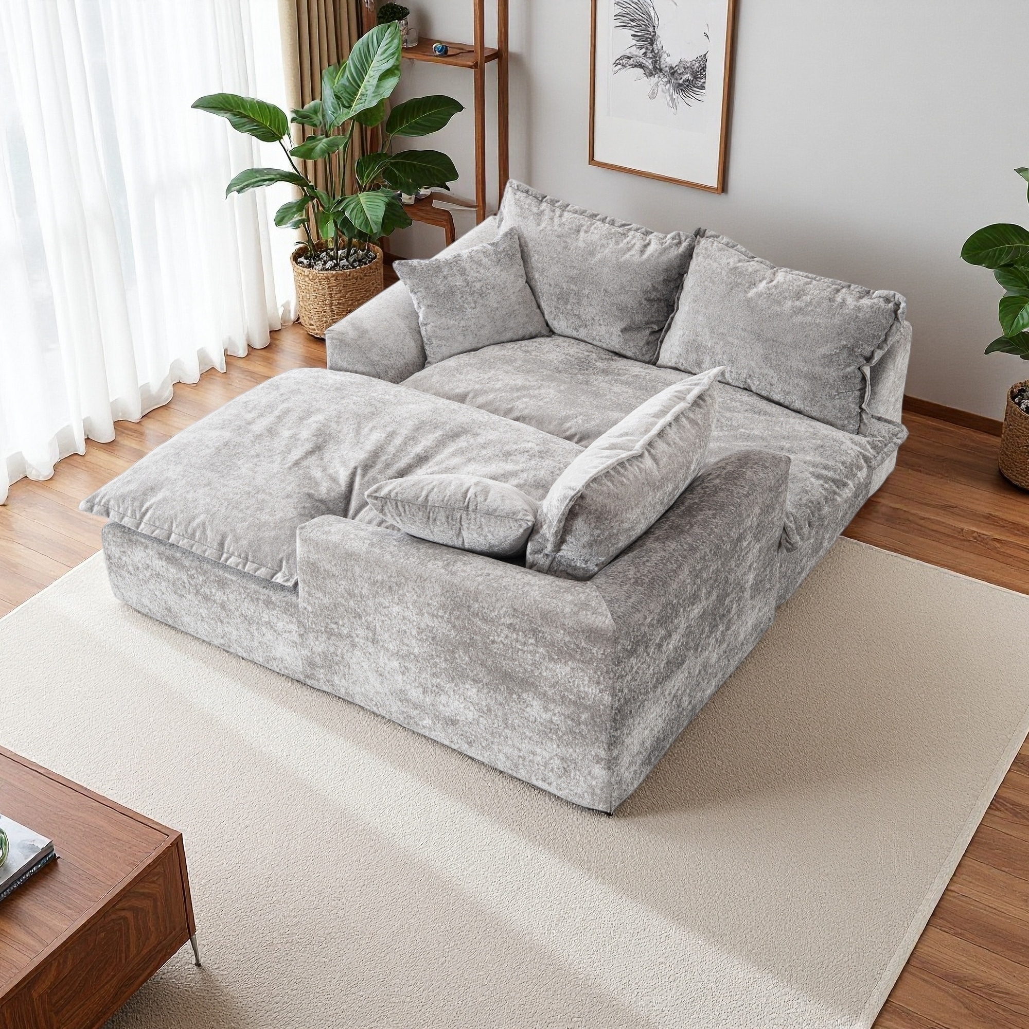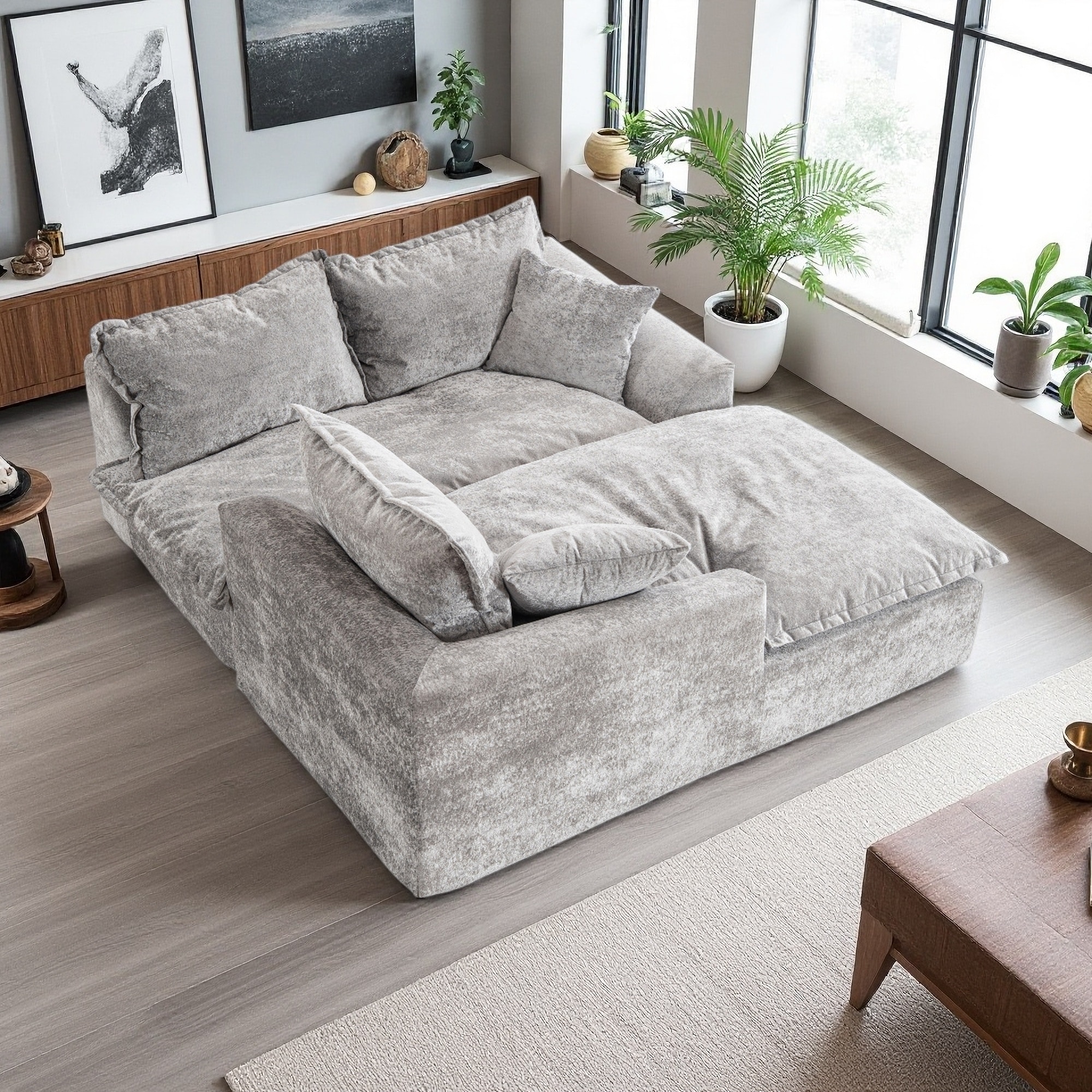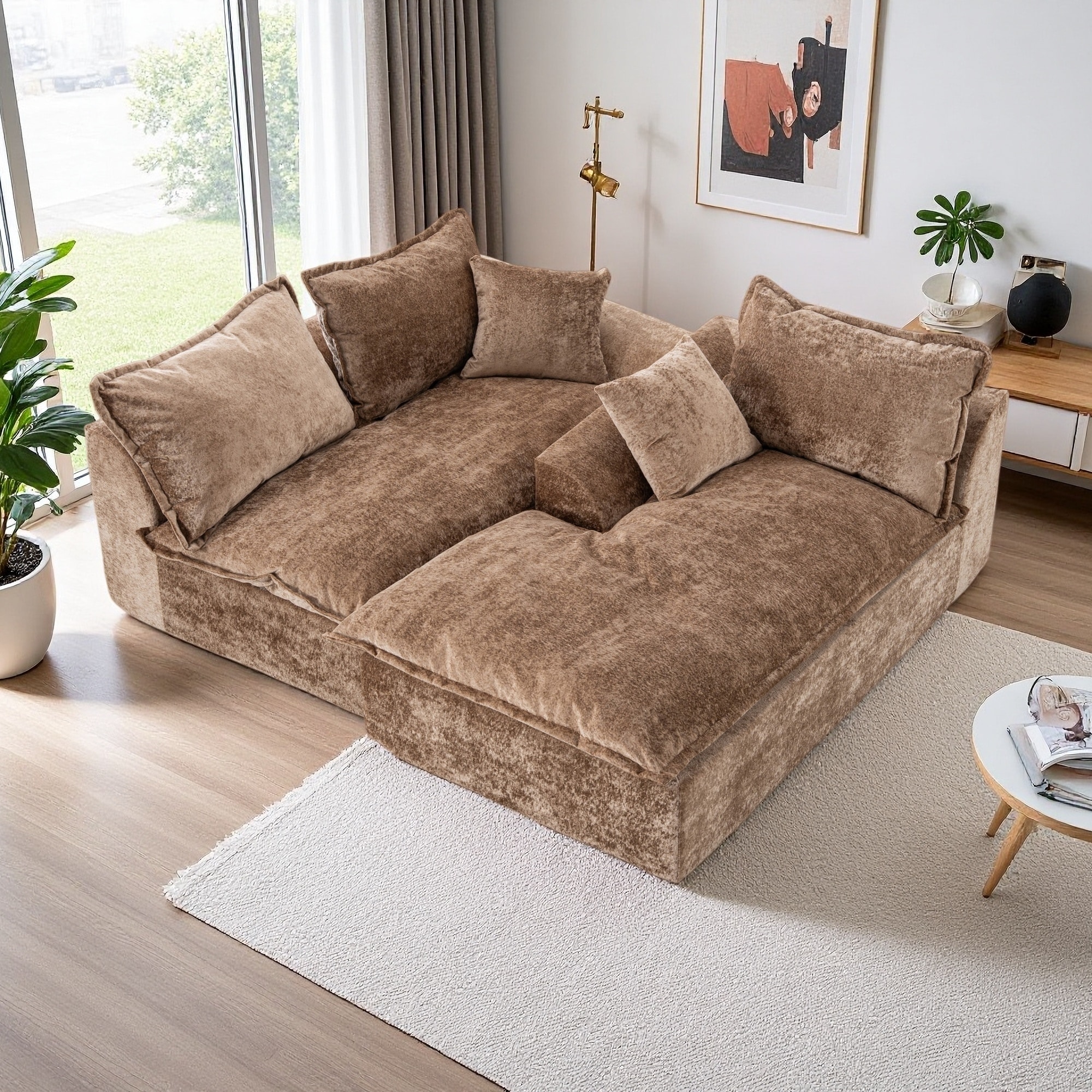 Kullavik Cloud Chenille L-Shaped Sofa, Modular Sectional Sofa with Ottoman, Throw Pillows and Double Layered Cushion
