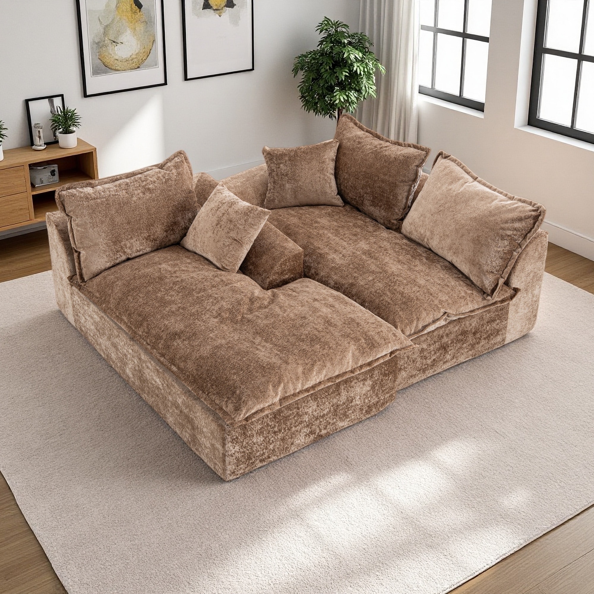 Streamlined Design Modular 3 Seat Boneless Velvet Fabric Sofa - 8' x 10'