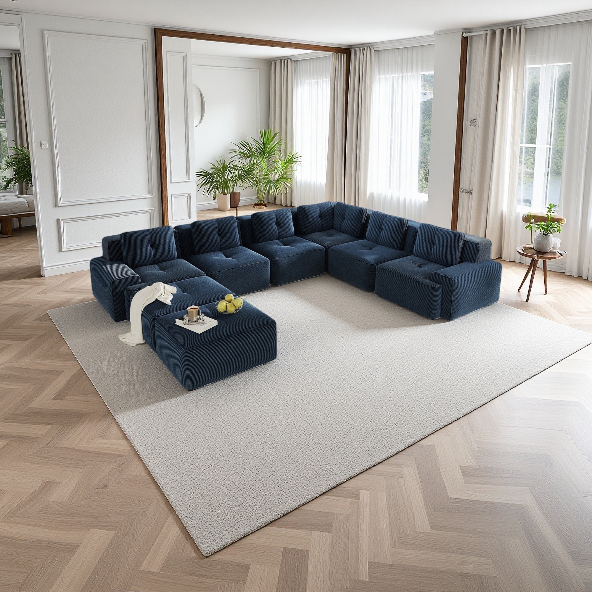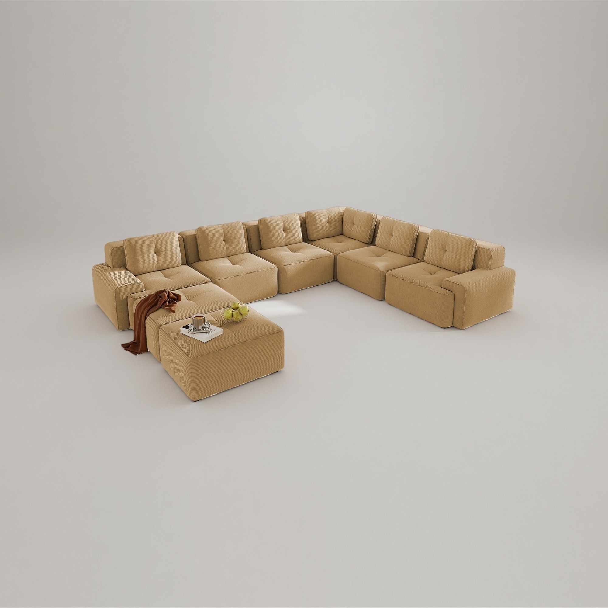 U-shaped Boneless Sofa, 32D High Density Sponge Bottom, Anti-Slip Design With Chaise, Free Combination, Deep Seat Design