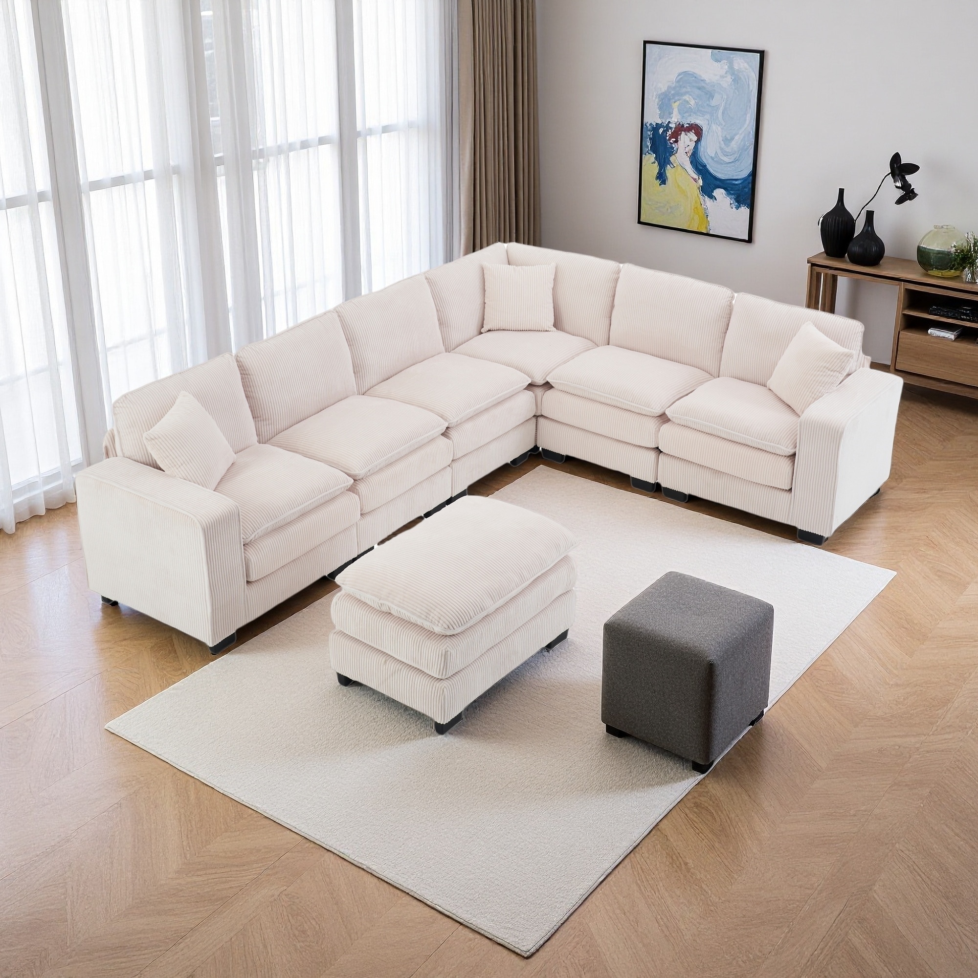 L-Shaped Premium Modular Corduroy Sectional Sofa with Movable Ottoman