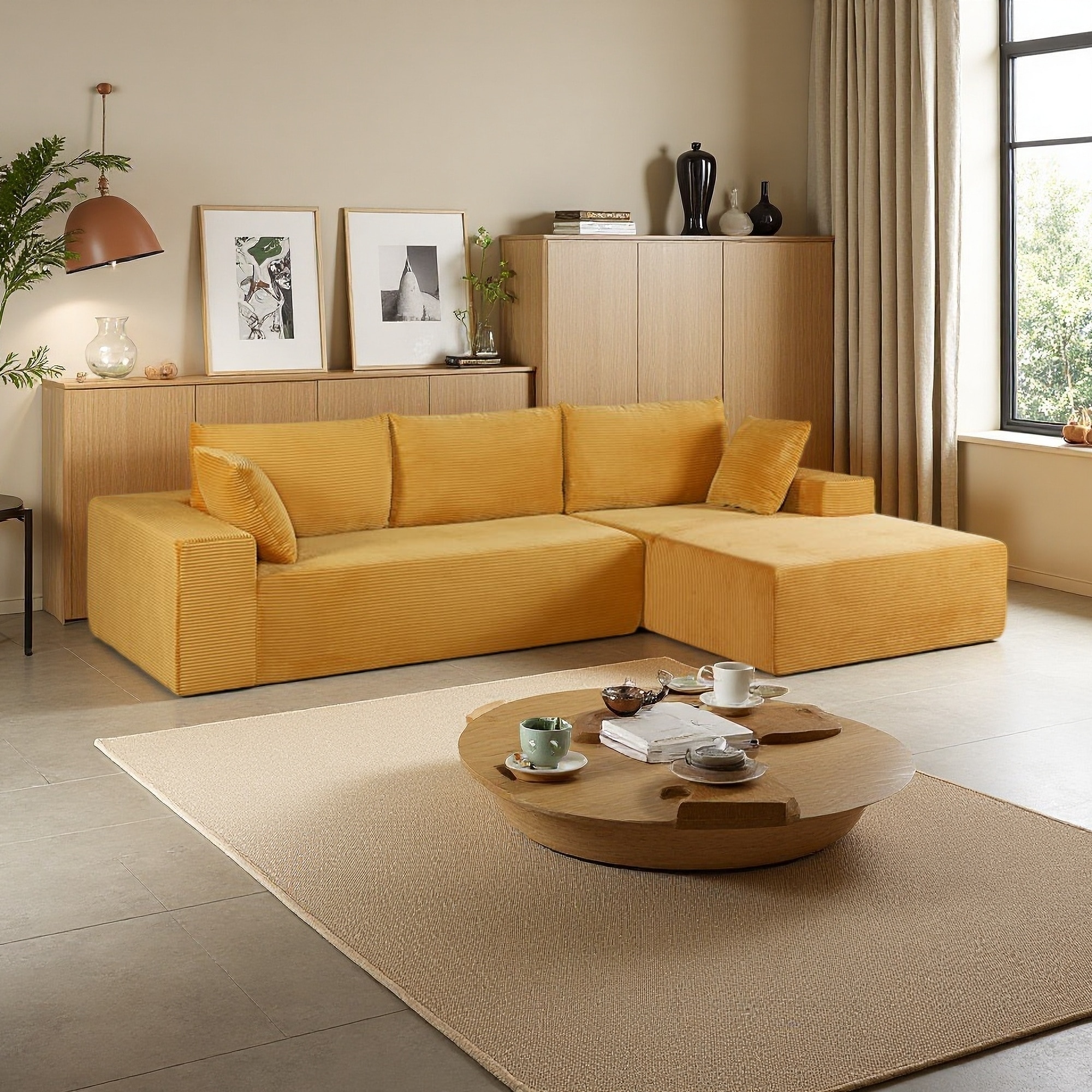 Daron Mid-Century Modern Sectional Corduroy Sofa