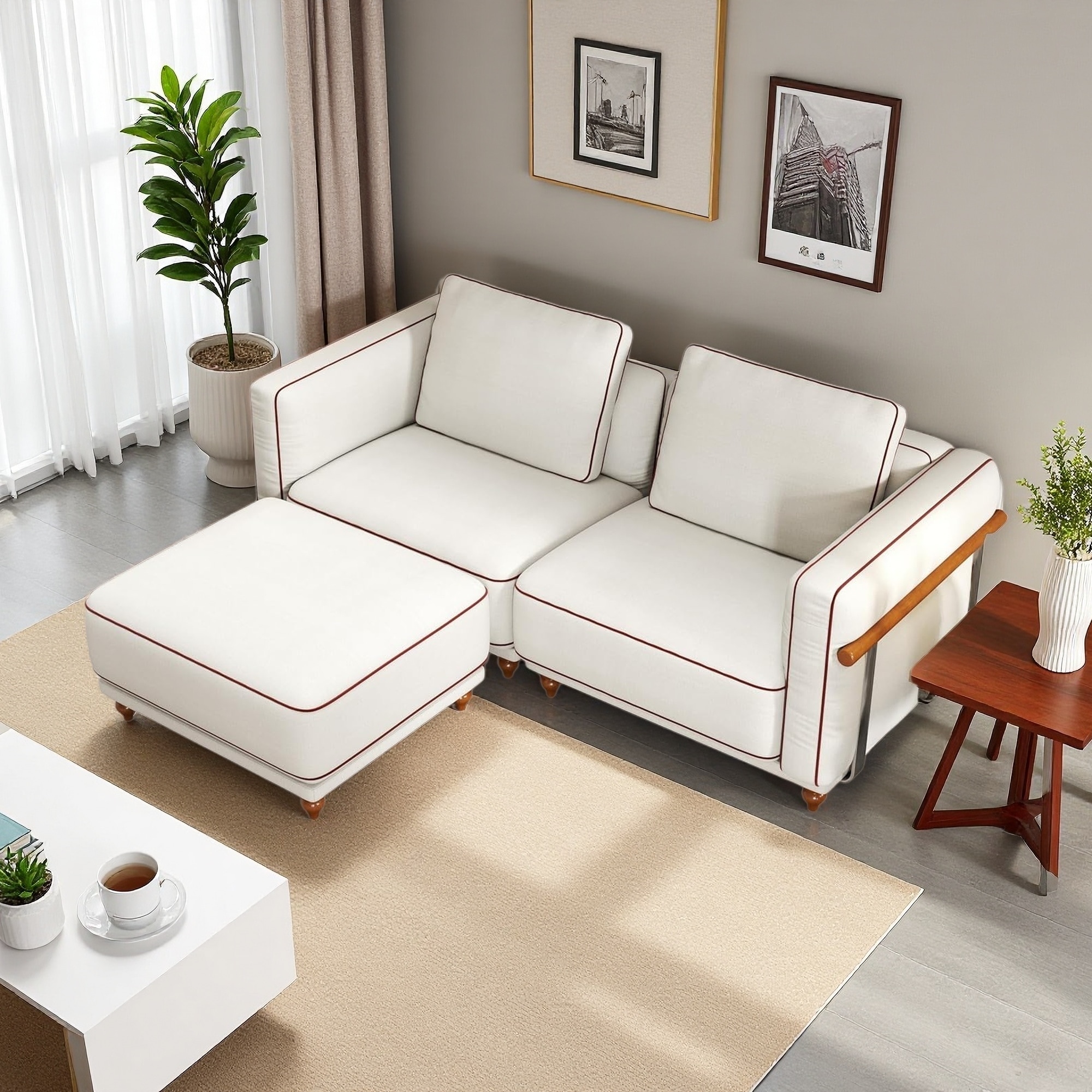 GDFStudio - Larkspur Chenille 3-Seater Sofa With Dual Ottoman