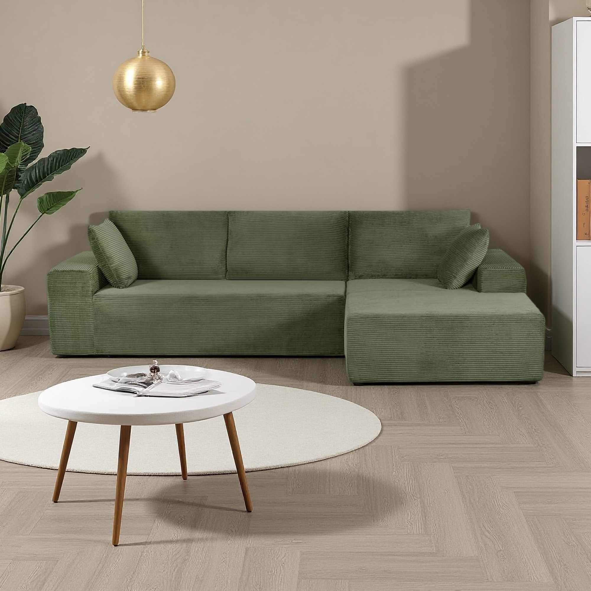 108" Corduroy Convertible 4-Seat Sectional Sofa with No Assembly Required and Left Facing Chaise