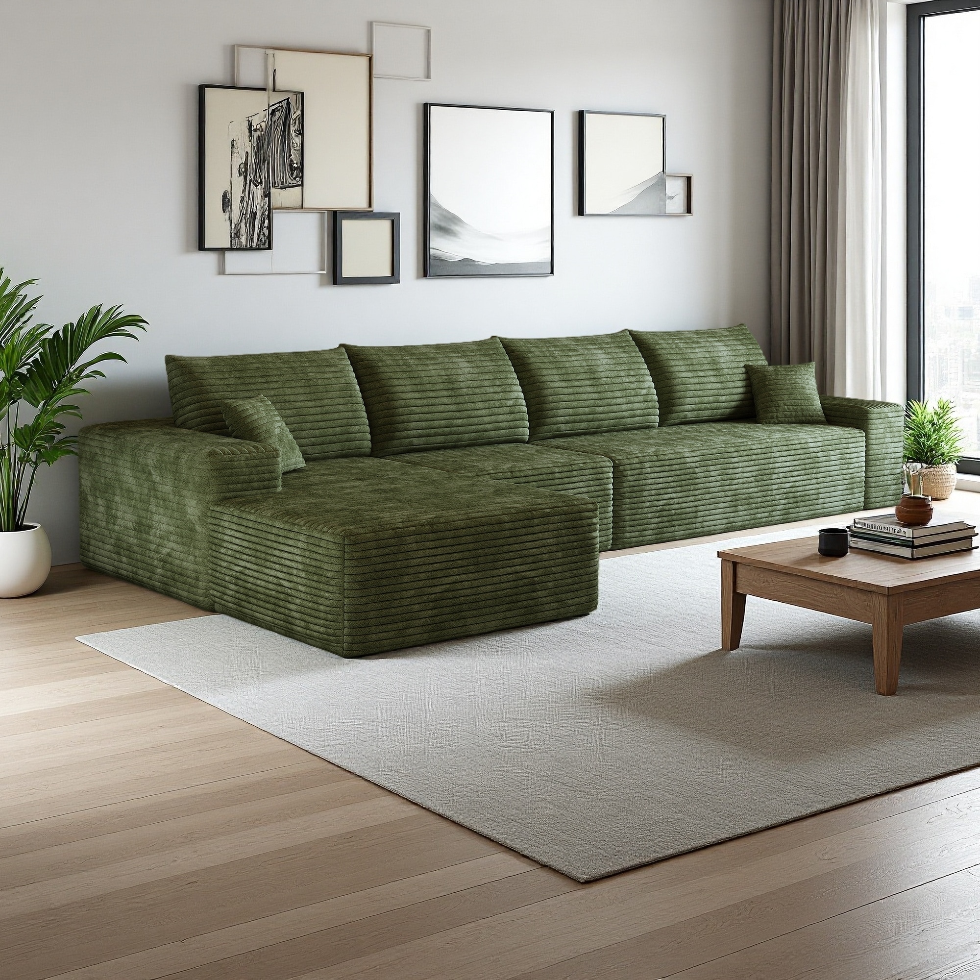 135'' Corduroy L-Shaped 4-Seat Sectional Sofa with Chaise Lounge and No Assembly Required