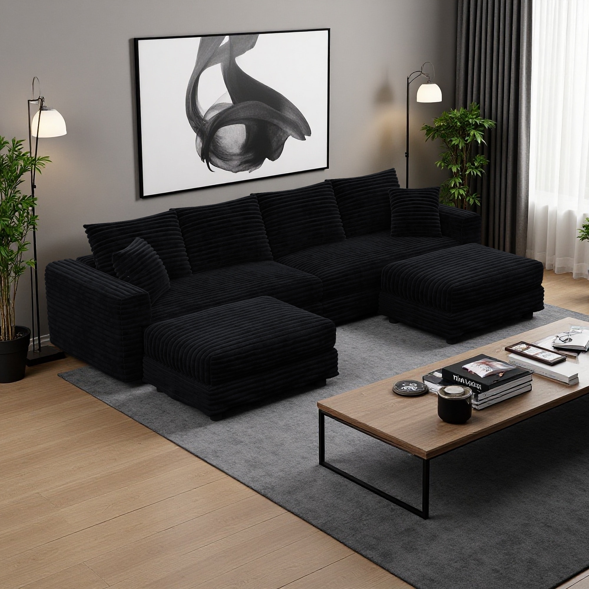 Modern Oversized Modular Corduroy Sectional Sofa Set
