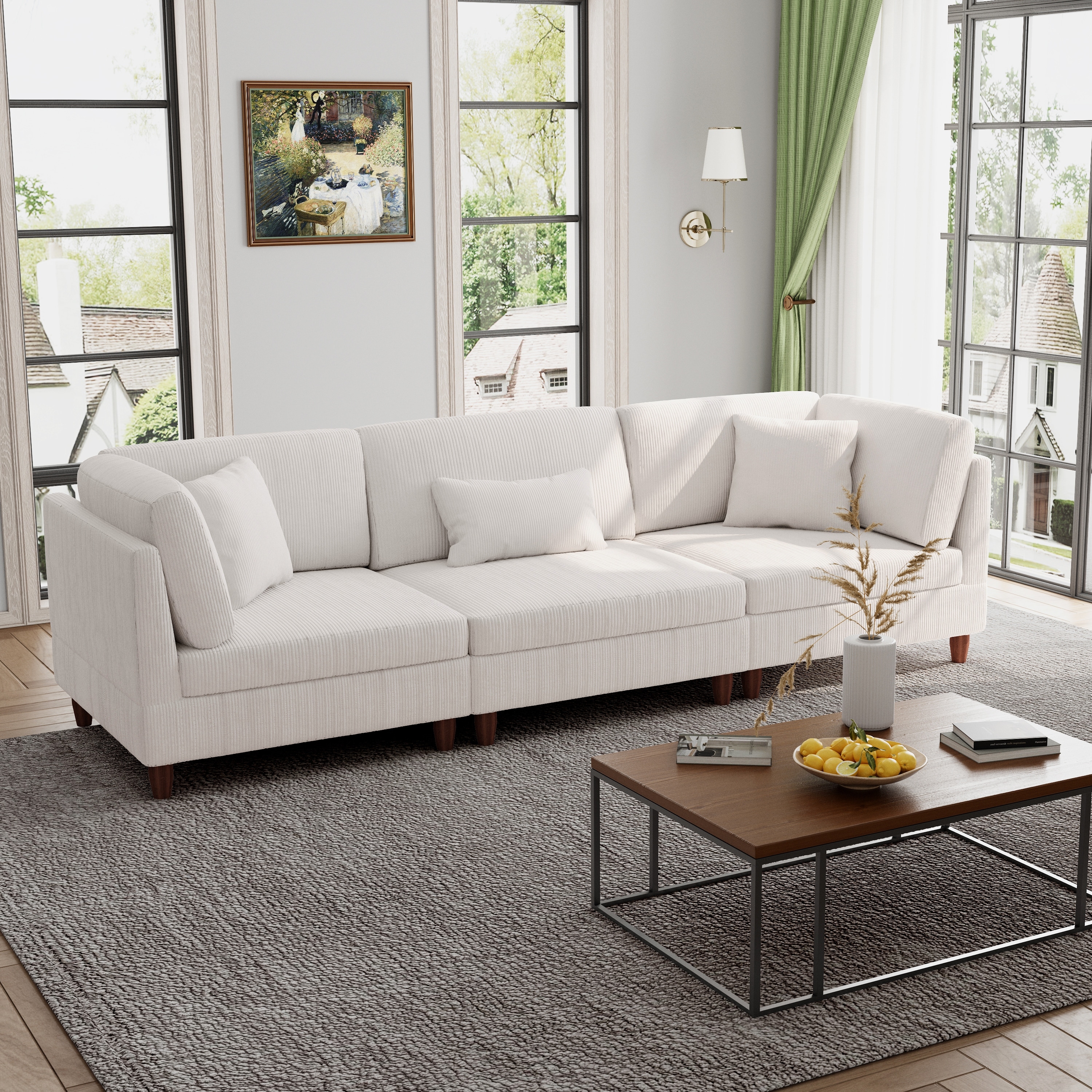 Corduroy Modular Boneless Sectional Sofa with Ottoman, Free combination, Pet-Friendly, No Assembly Required