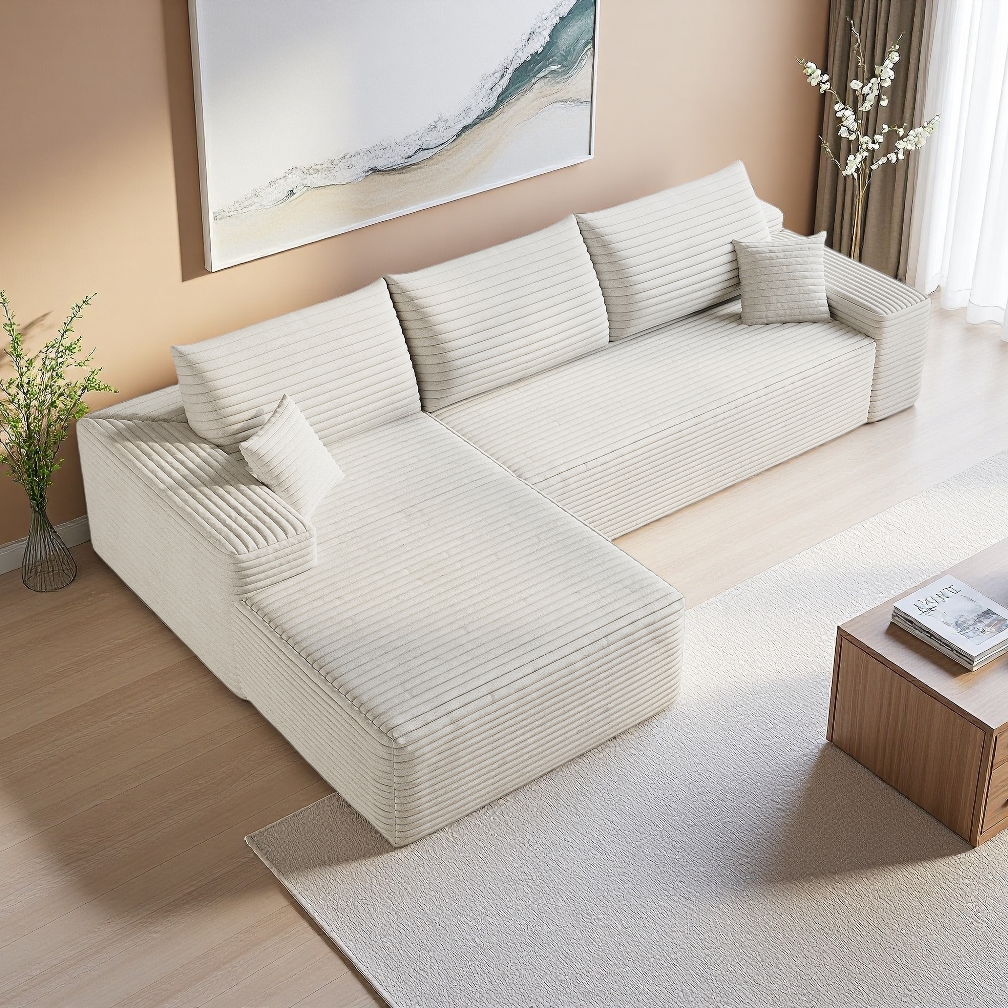 L-Shaped Modular Sectional Sofa with Chaise Lounge, Corduroy Boneless Cloud Sofa, High-Resilience Foam Compressed Sofa