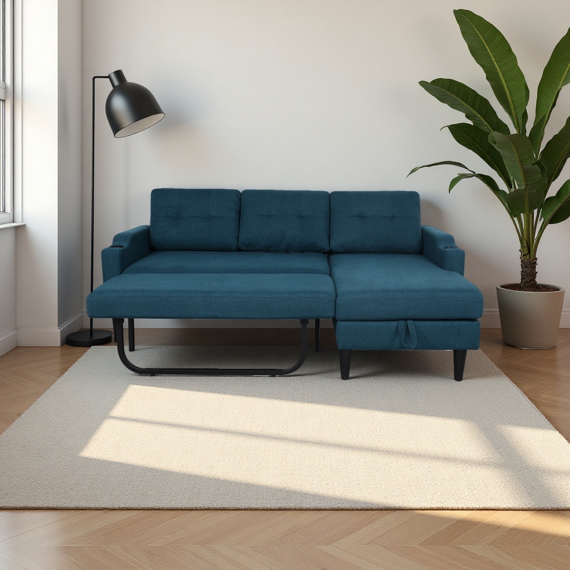 Sectional Sofa Pull-out Sofa Bed with Storage Ottoman,Three Pillows and Charging Devices Sleeper Sofa for Living Room