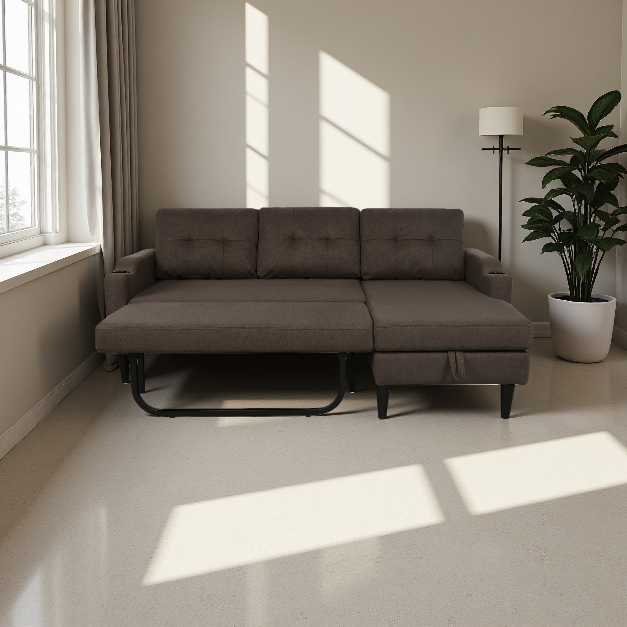 91" Wide Velvet Reversible Sofabed Sectional Sofa & Chaise - 91" Wide