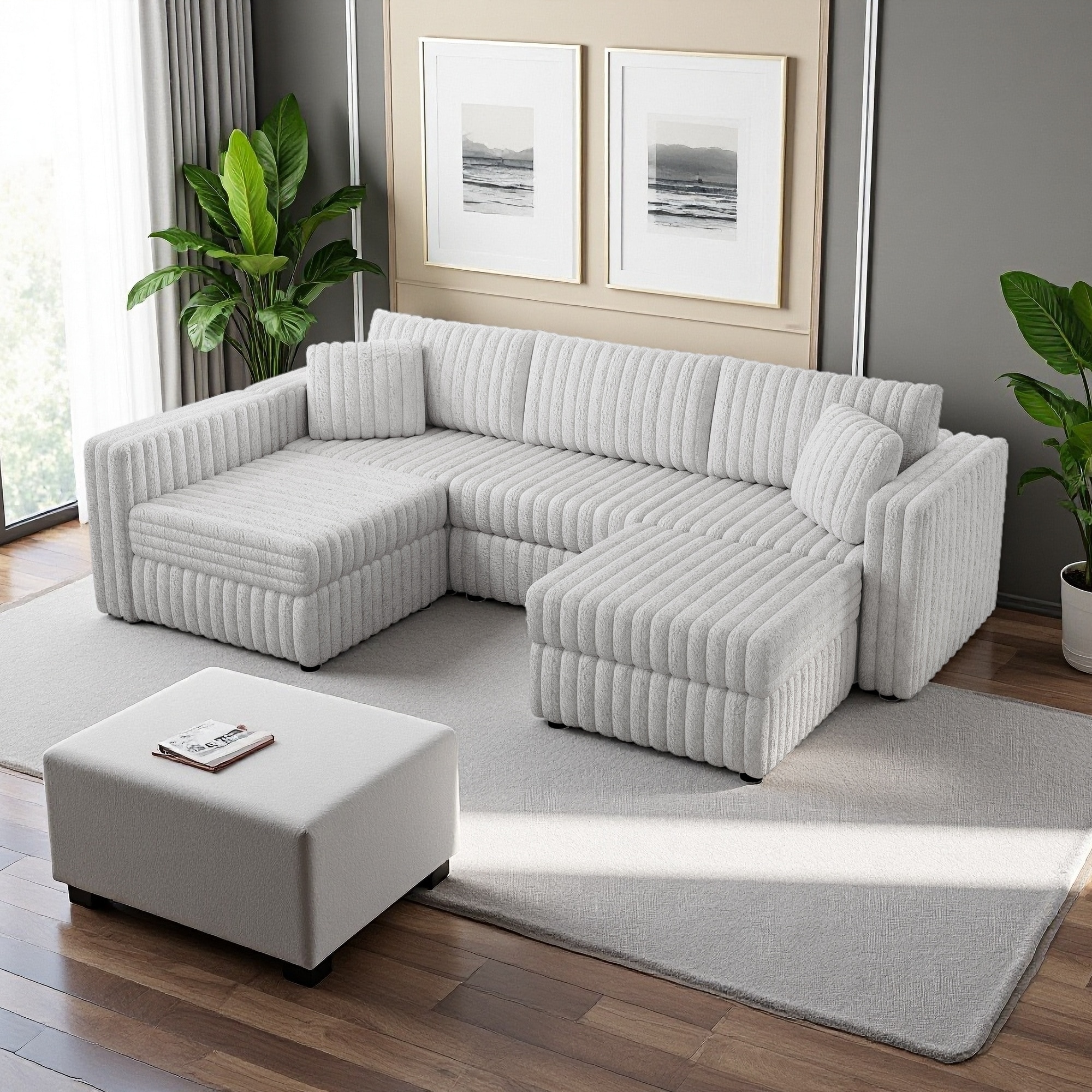 142" U Shape Modular Sectional Sofa with Ottomans and High-Loft Cushions and Corduroy for Living Room or Guest Room