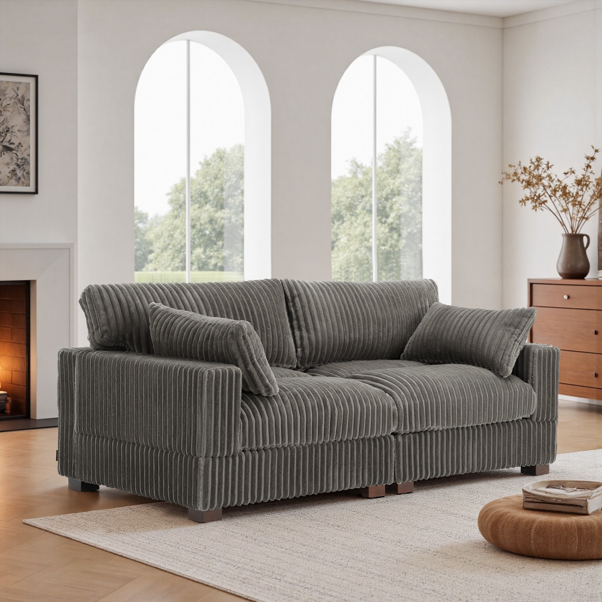 Plush Corduroy Upholstered Modular Sectional Sofa with Pillows