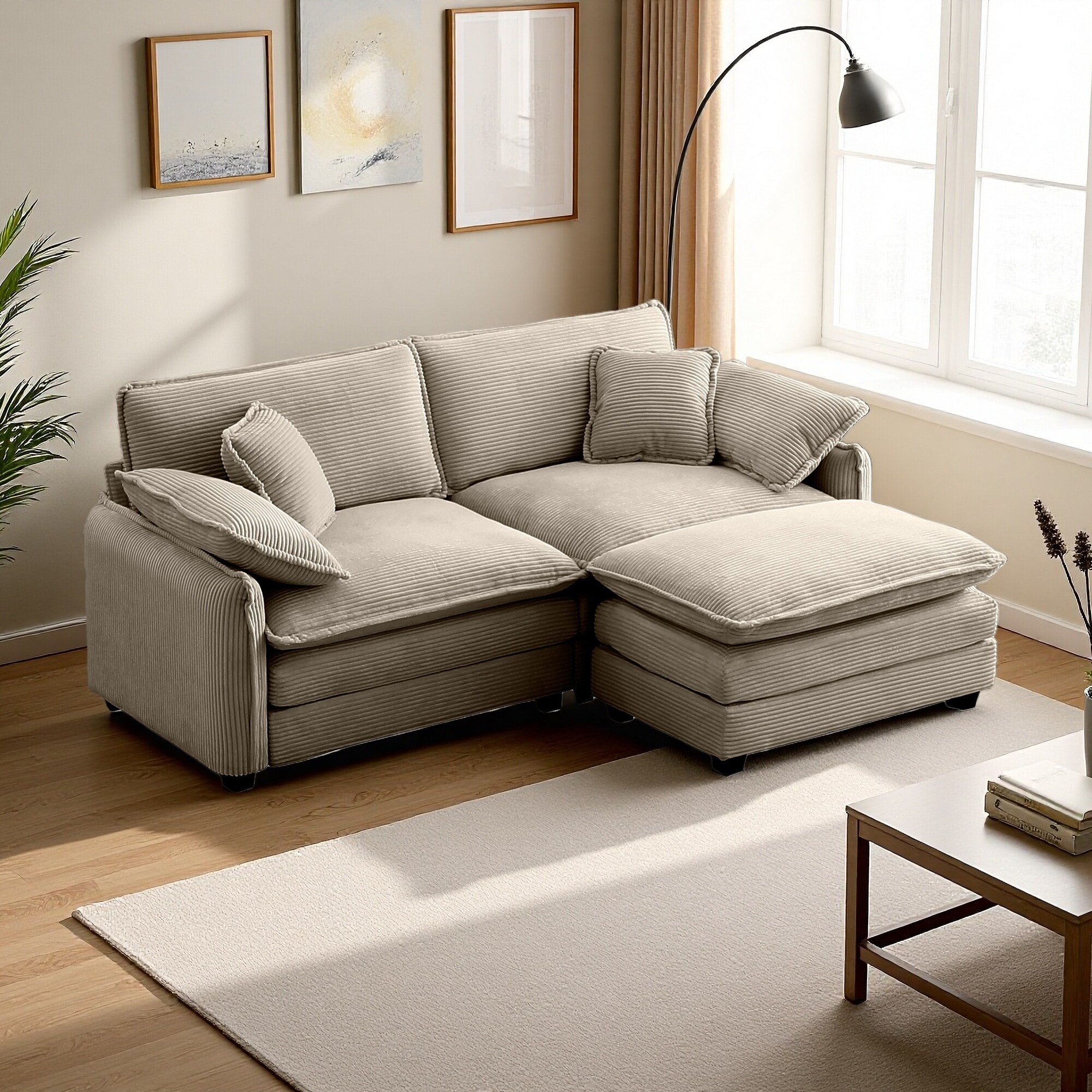81" Corduroy L-Shaped Modular Sectional Sofa with 1 Ottoman (2-Seater)