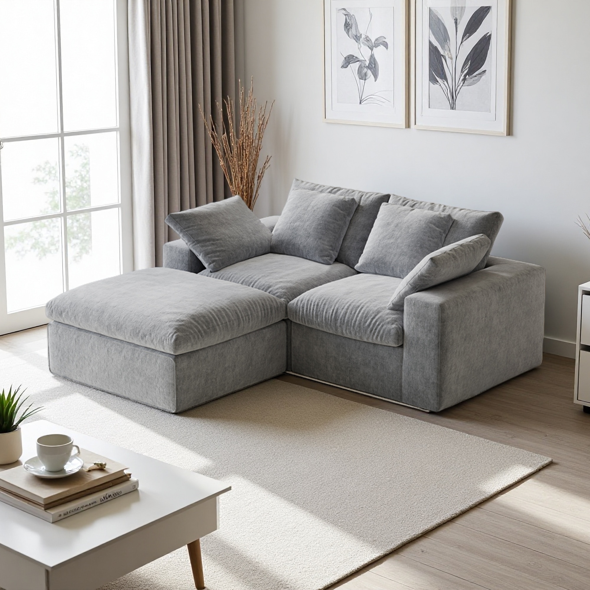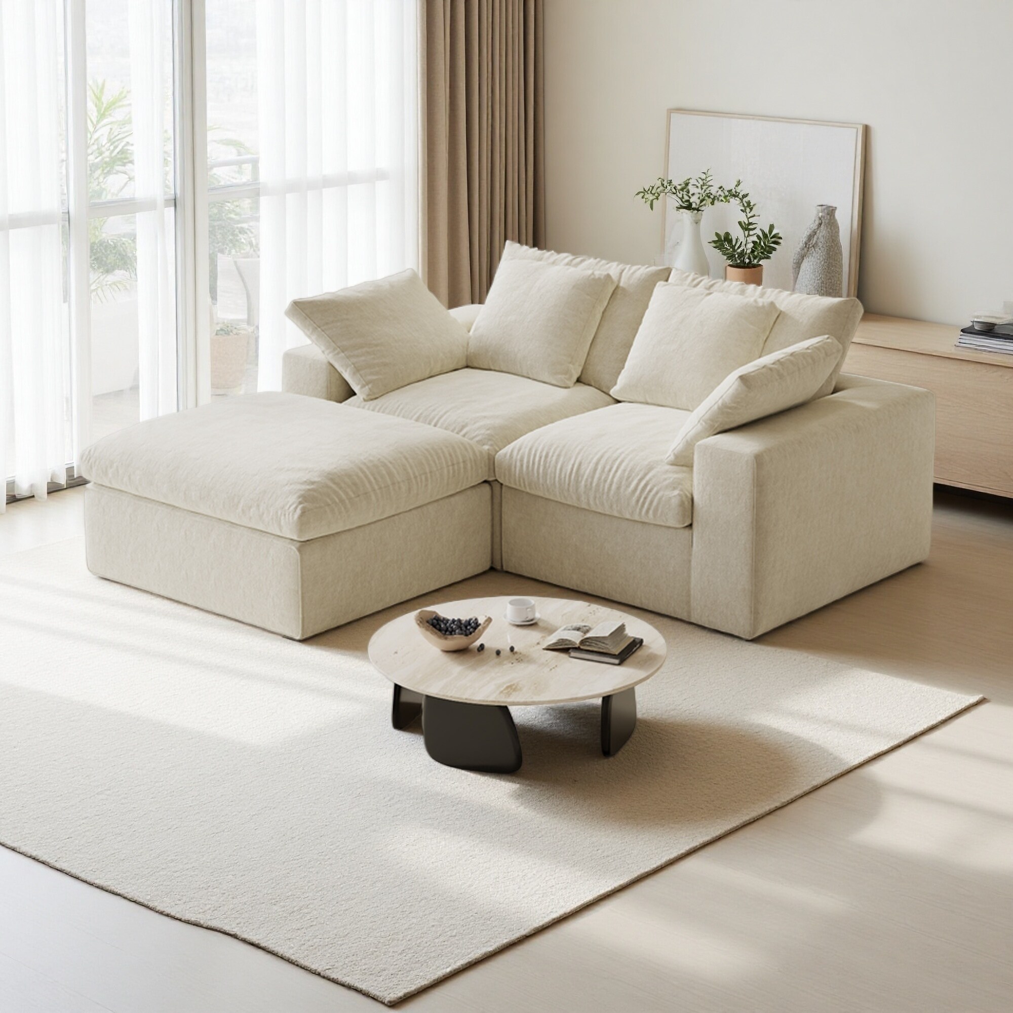 L Shaped Corner 6 Seater Cloud Couch with Movable Ottomans & Storage