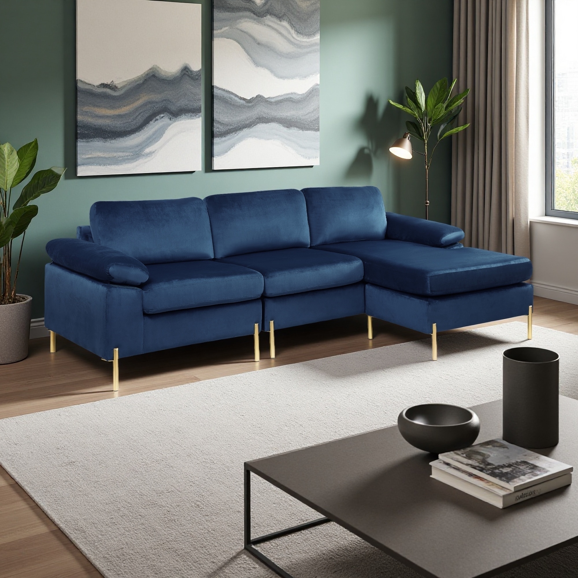 101.2" Velvet L-Shaped Sectional Sofa with Chaise Lounge