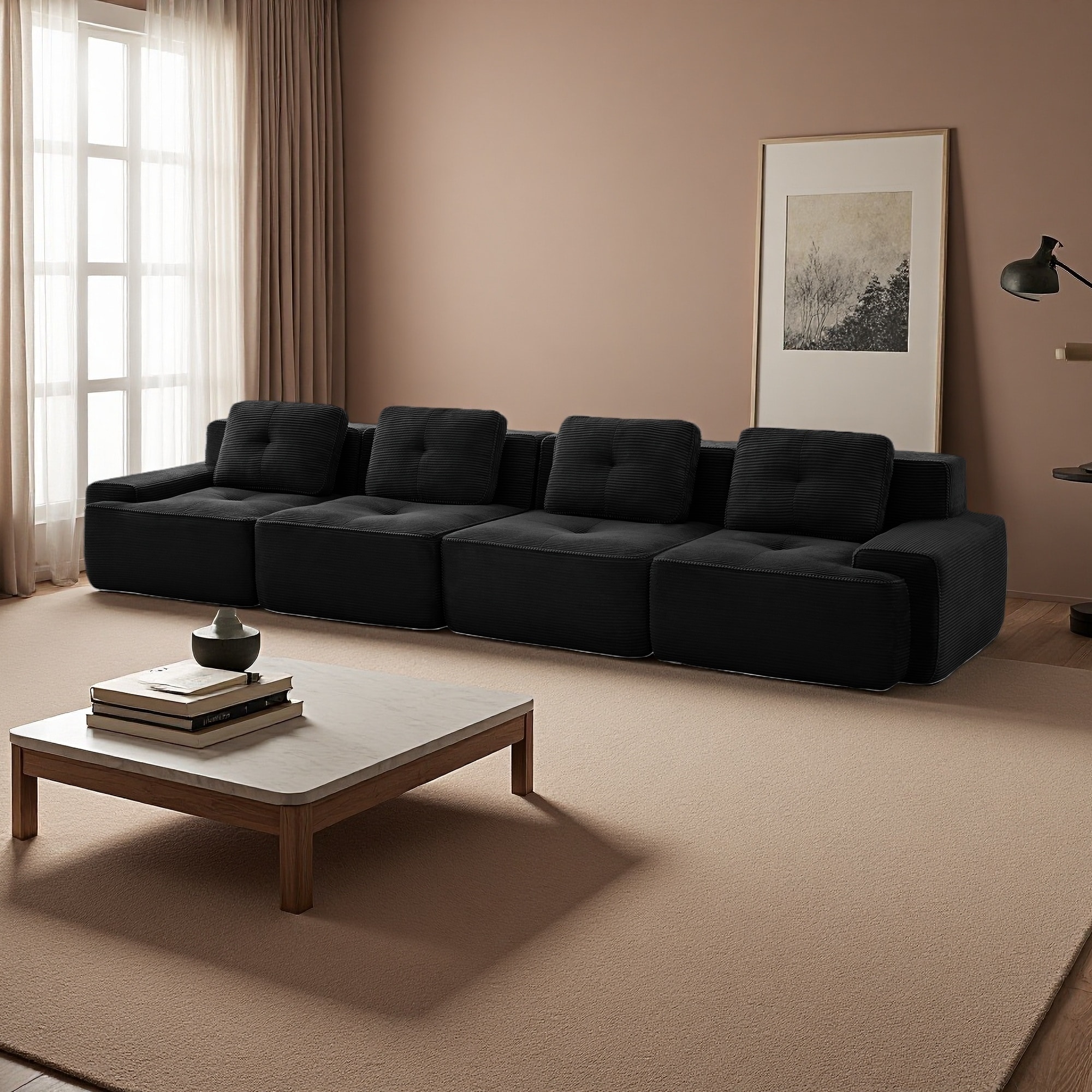152.8" Corduroy Modular Sectional Sofa with Deep Seat and Tufted Design