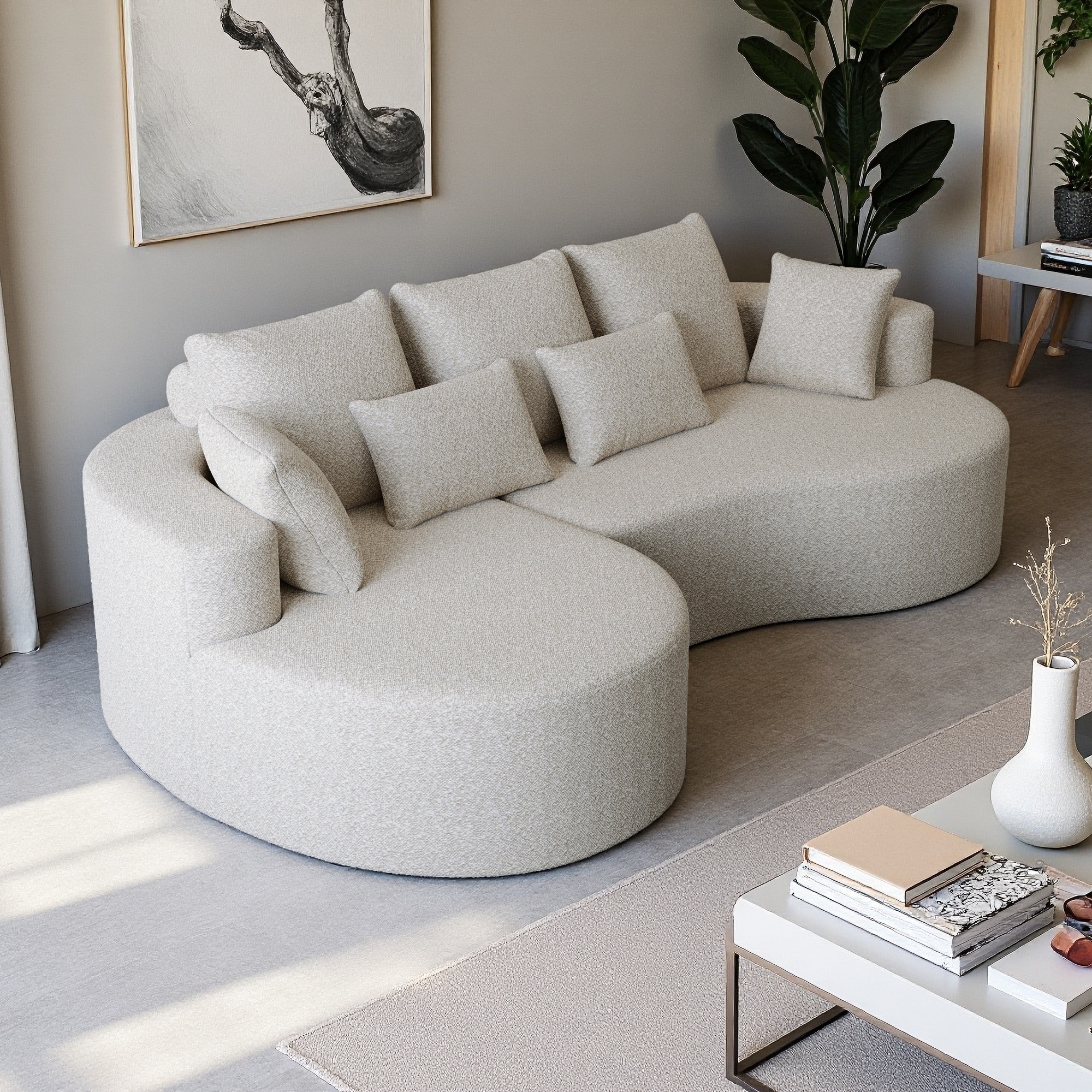 109.4" Boucle U-Shaped Sectional Sofa with Shell-shaped Armrests and 2 Movable Ottomans (3-Seater)
