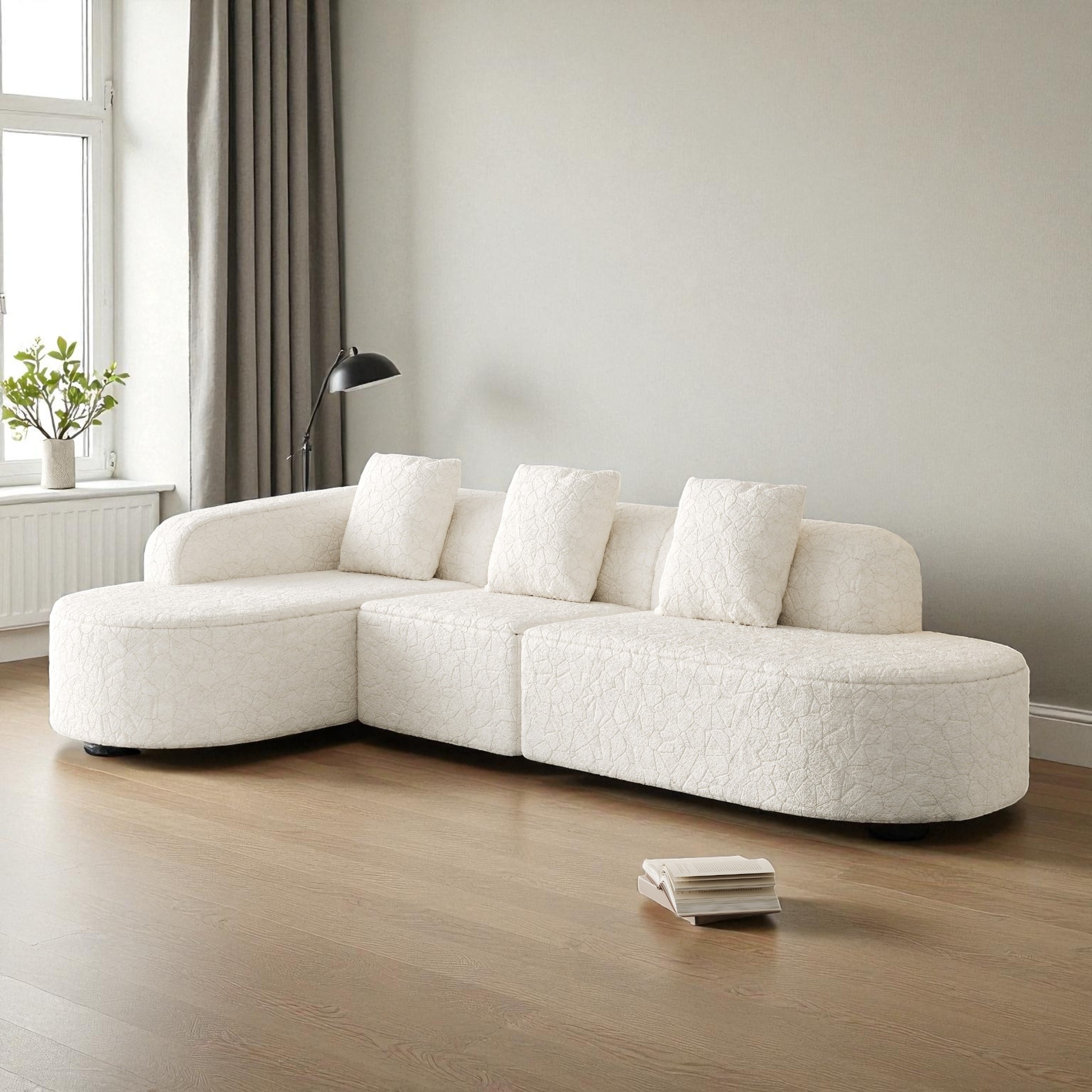 111.8" Modern Curved Modular Sectional Sofa Upholstered in Lychee-Textured Long-Pile Polyester with 3 Pillows for Living Room