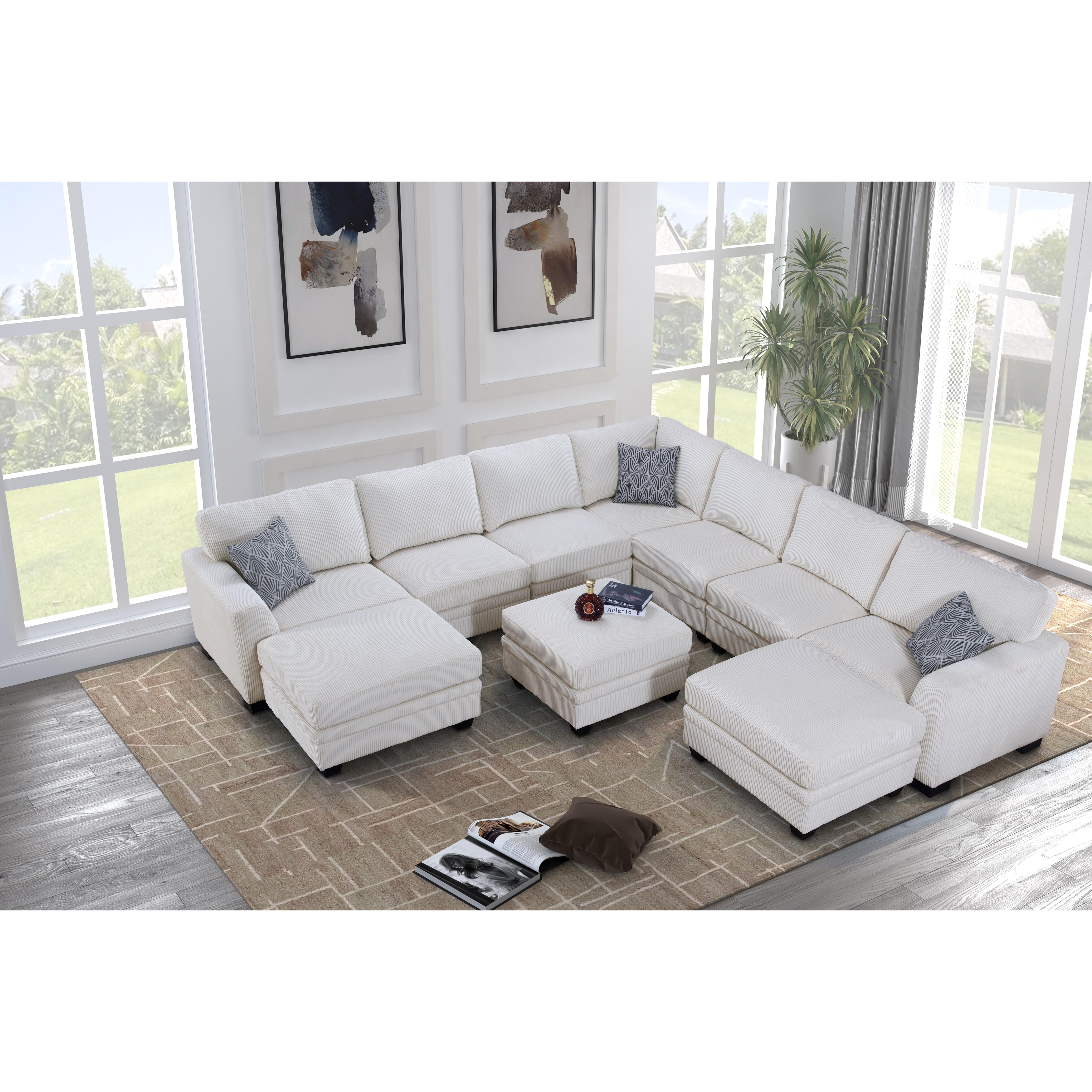 Modern Oversized Modular Sectional Sofa Set With Pillows