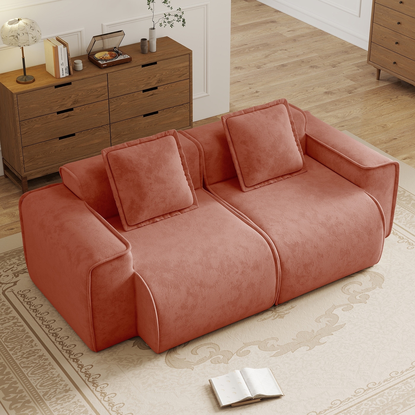 Streamlined Design Modular 2 Seat Boneless Velvet Fabric Sofa - 8' x 10'