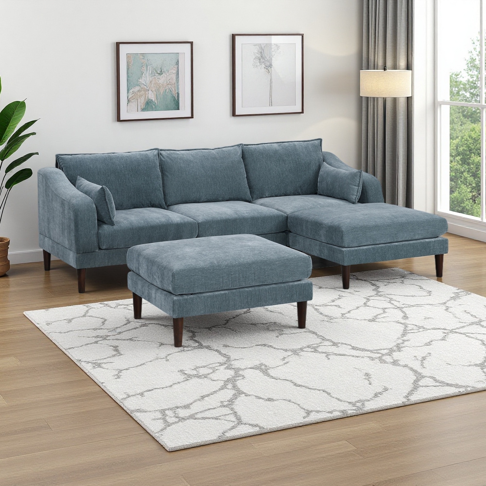 GDFStudio - Vale 4 Seater Sectional Sofa with Double Ottomans and Pillows