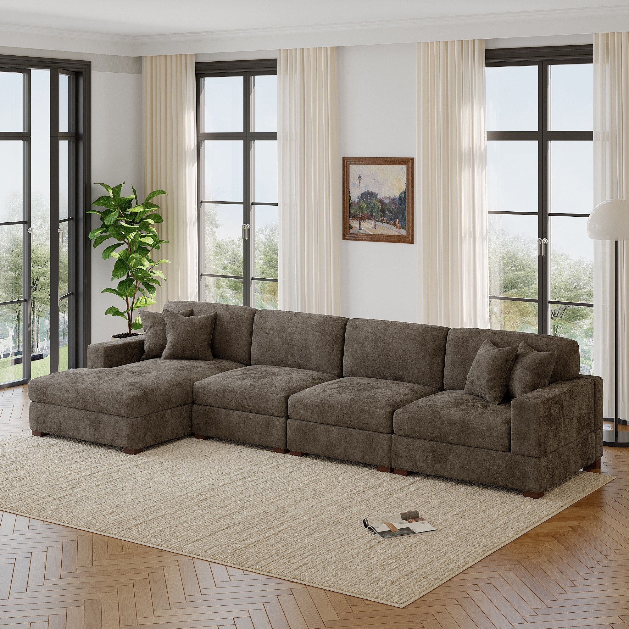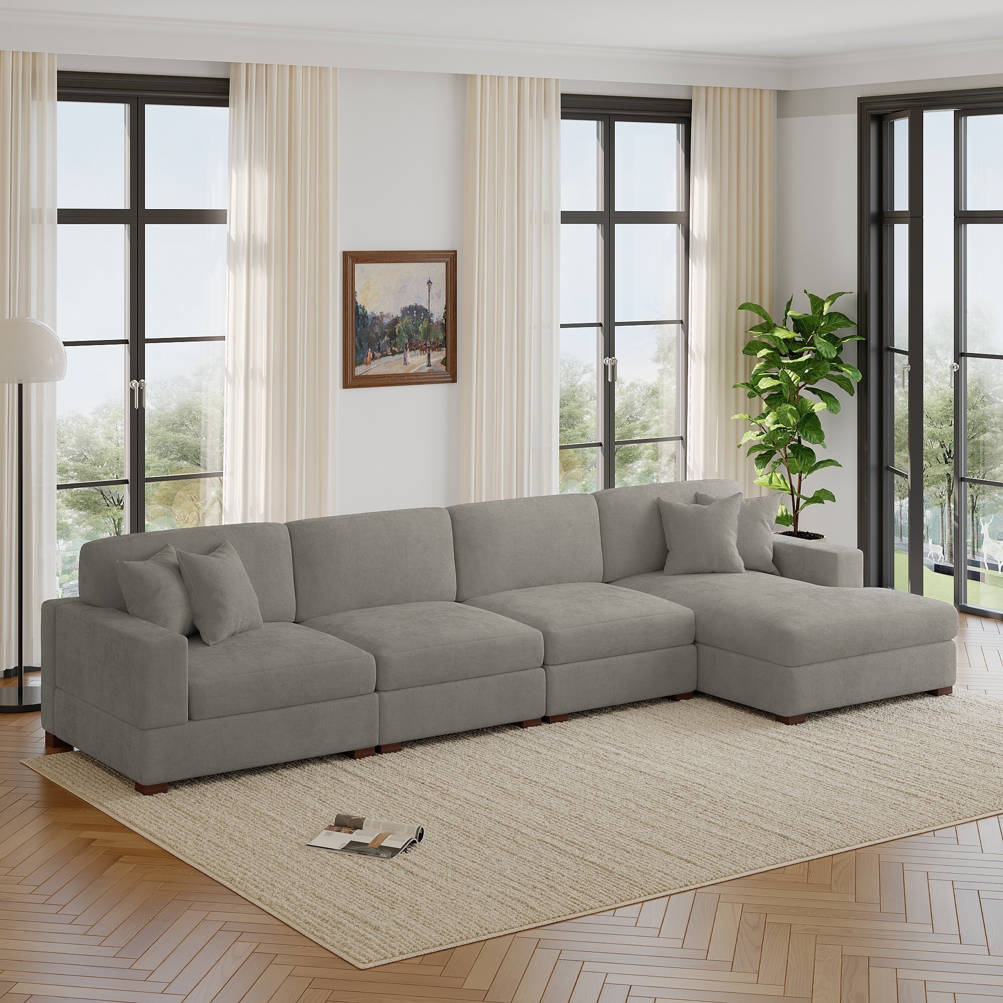 Modular Curved Sectional Sofa, Oversized Chenille Cloud Couch, Compressed Upholstered Sofa with 4 Throw Pillows